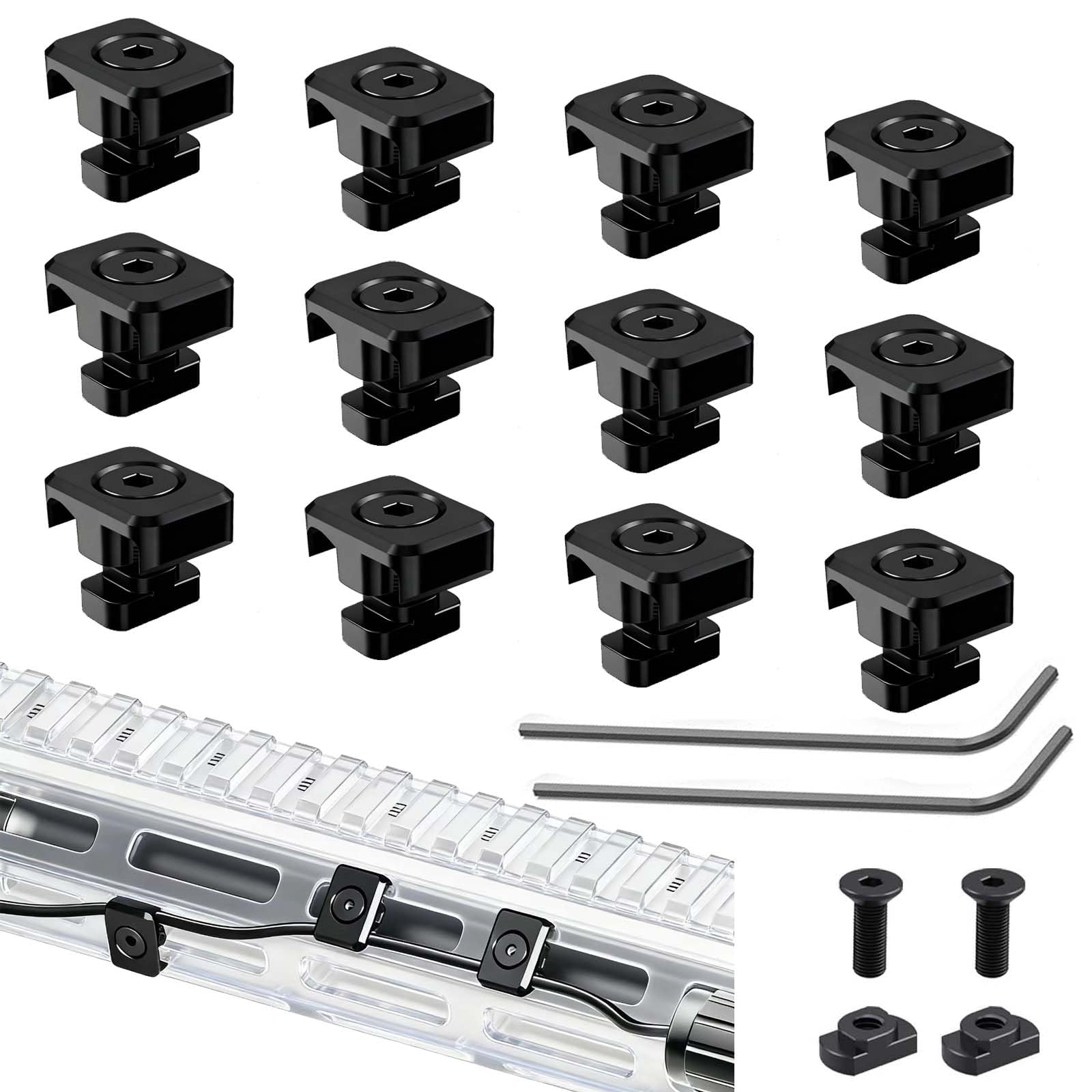 12 Pack M-Lok Cable Clips, Wire Management Clips for Picatinny Rail, Flashlight Pressure Switch Cable Holder Organizer for Rifle Accessories
