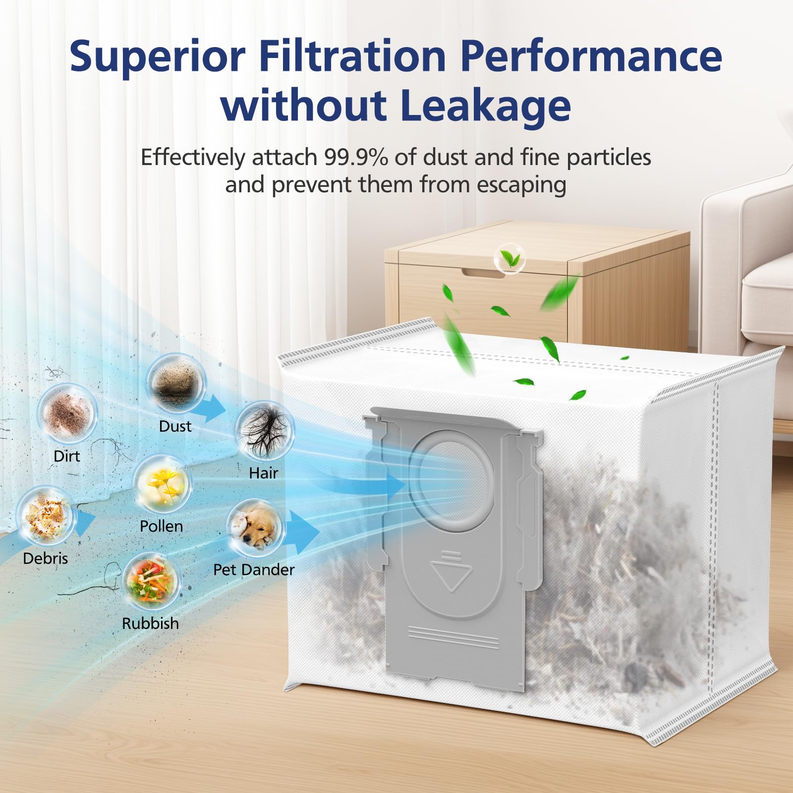 - 【ANTI-LEAK TECHNOLOGY】: The upgrade Q5 Max+ dust bag with anti-leakage technology has a strong sealing property to ensure all the dirt inside the dust bag is collected, The rubber gasket is thick and can seal very well to the dock, won't touch dust when you throw it