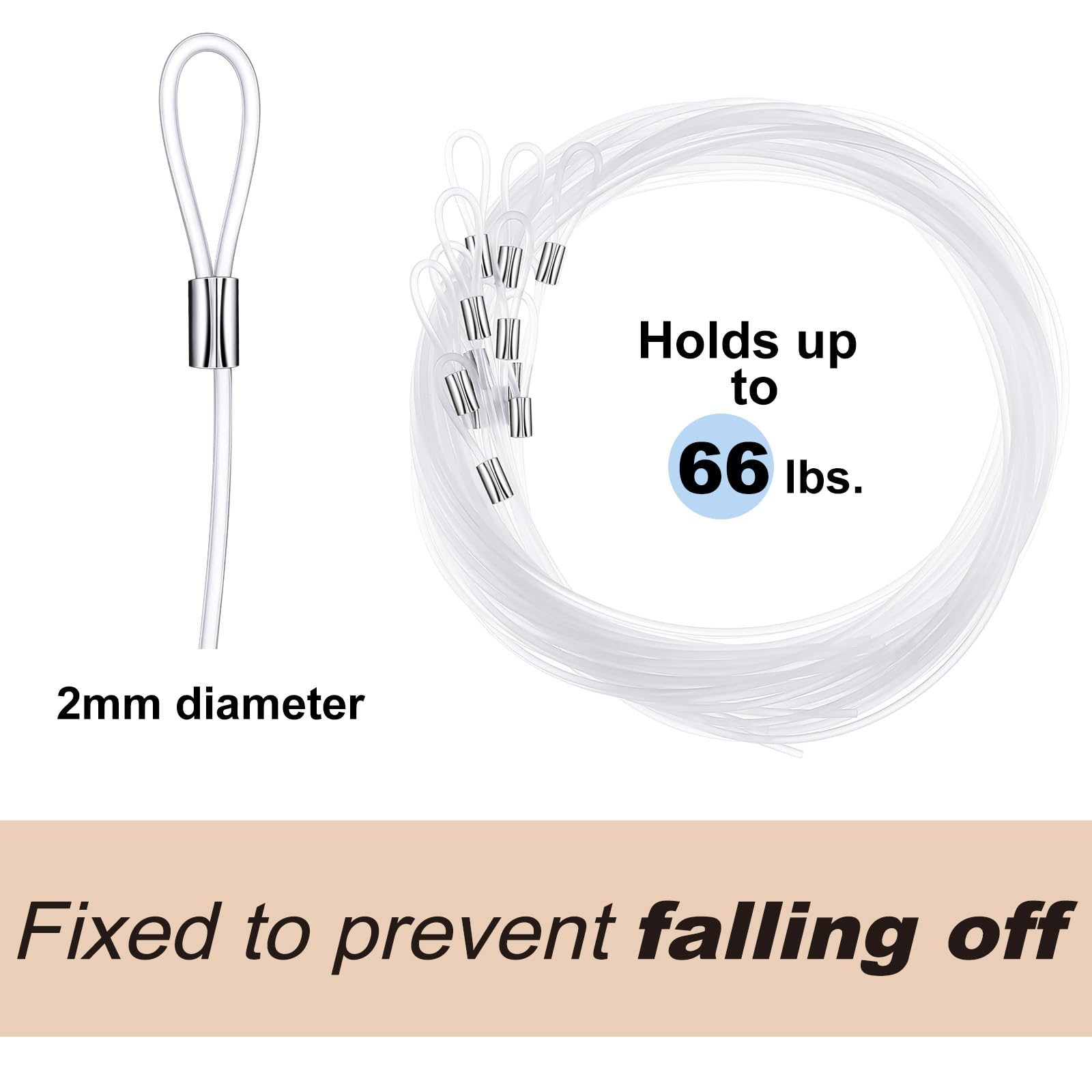 - Load Capacity: this clear nylon picture cable features an impressive load capacity of approx. 66 lbs/ 30 kg, making it suitable for hanging a wide range of items, from lightweight artwork to heavier decorative pieces; Its robust load bearing capability ensures that your displayed items are securely held without falling