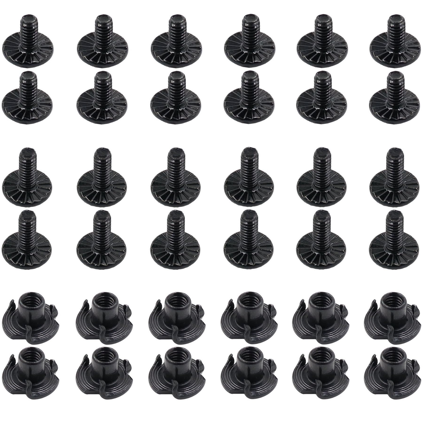 12 Sets Gun Holster Screws and Black 3 Prong T-Nuts Kit #8-32 x 5/16" & 3/8" for Safari Land QLS System/Holster & Kydex & Leather Gun Holster Screws with Anti-Slip Teeth. (12 Sets-Black)