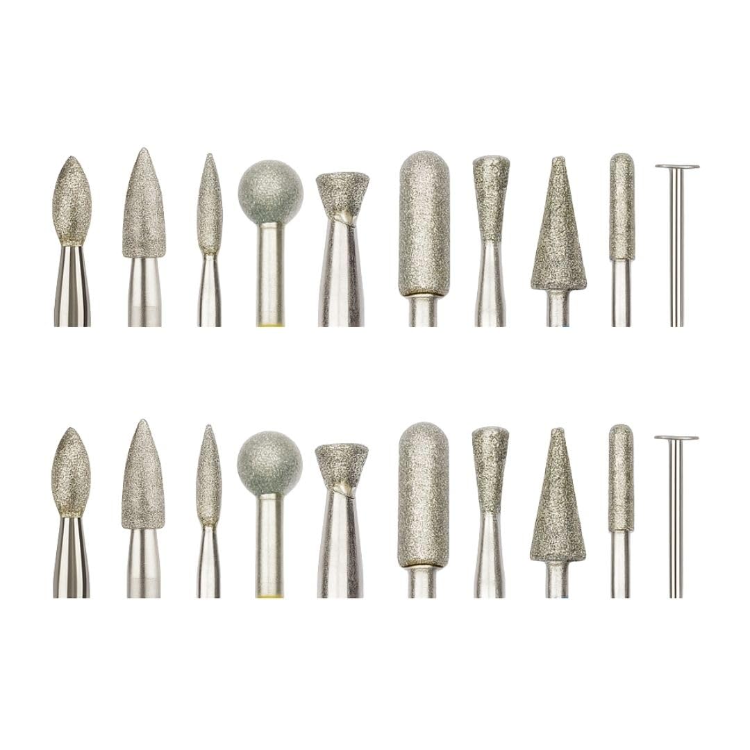 - 【Diamond Grinding Drill Bits】Includes 20 precision-ground burr bits in essential industrial shapes including cone, ball,cylinder, and bullet profiles, optimized for metal surface preparation and fine deburring work