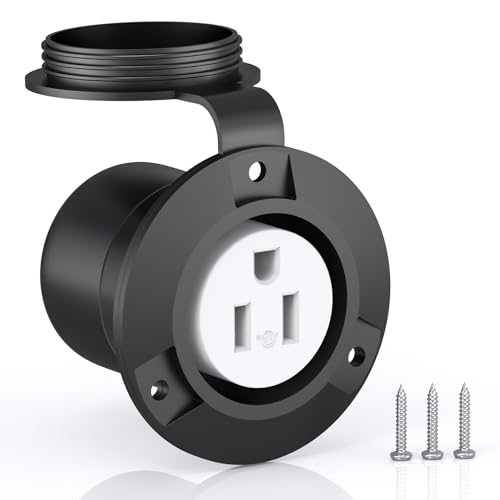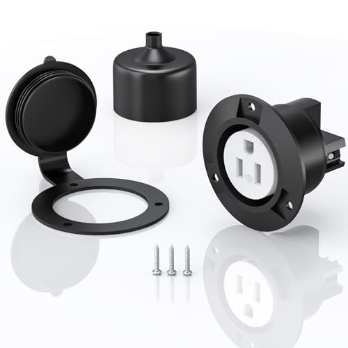 120V 15A Flanged Outlet Female Electrical Outlet with Cover NEMA 5-15R Waterproof Receptacle for RVs Marine Truck Bed Block Heater ETL Listed