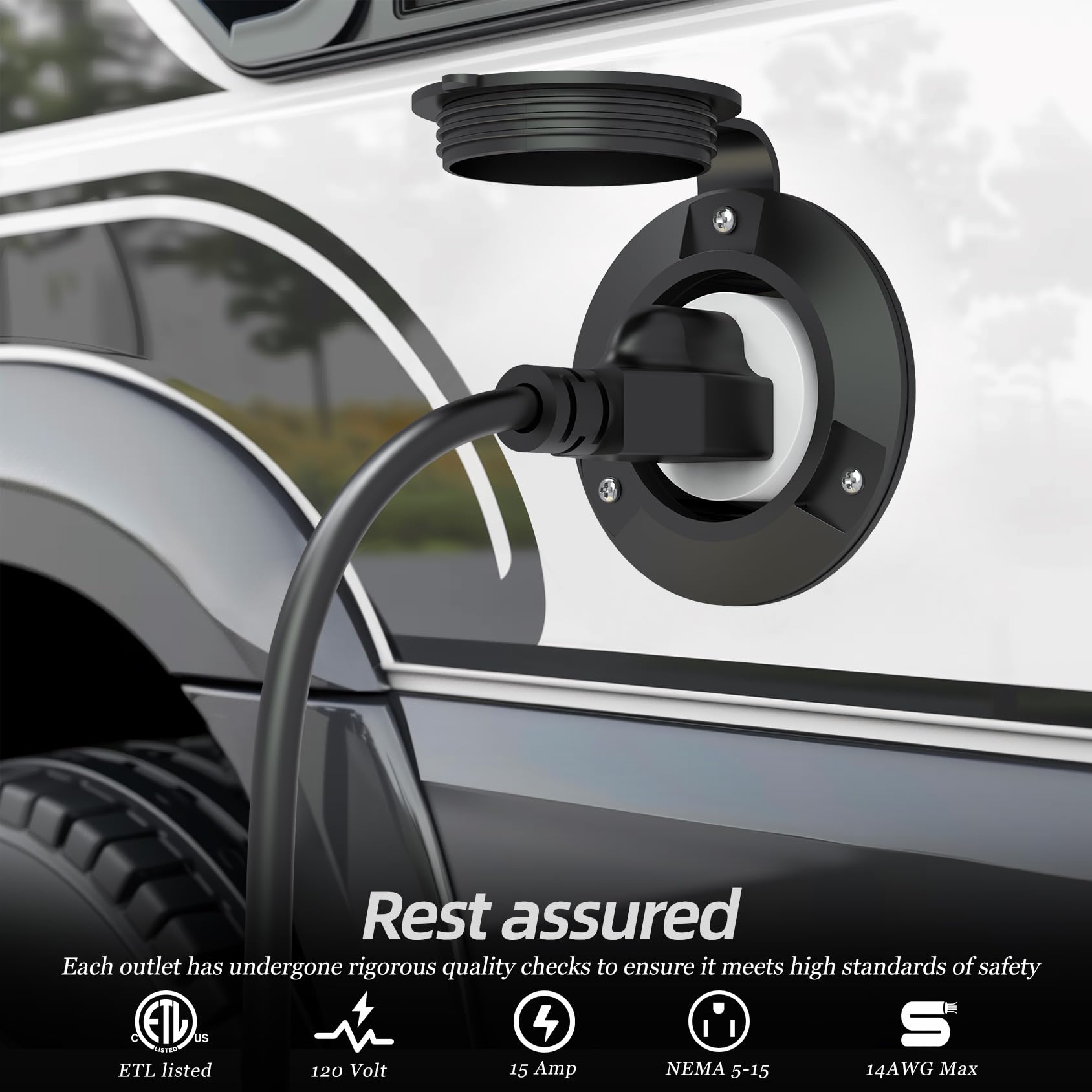 - Versatile Compatibility: The 120V outlet is designed to accommodate standard NEMA 5-15 Type-B plugs, making it compatible with a wide range of electrical devices and appliances. It is ideal for use in cars, boats, marine settings, trucks, trailers, pickups, and RVs, and is suitable for both residential and commercial applications.