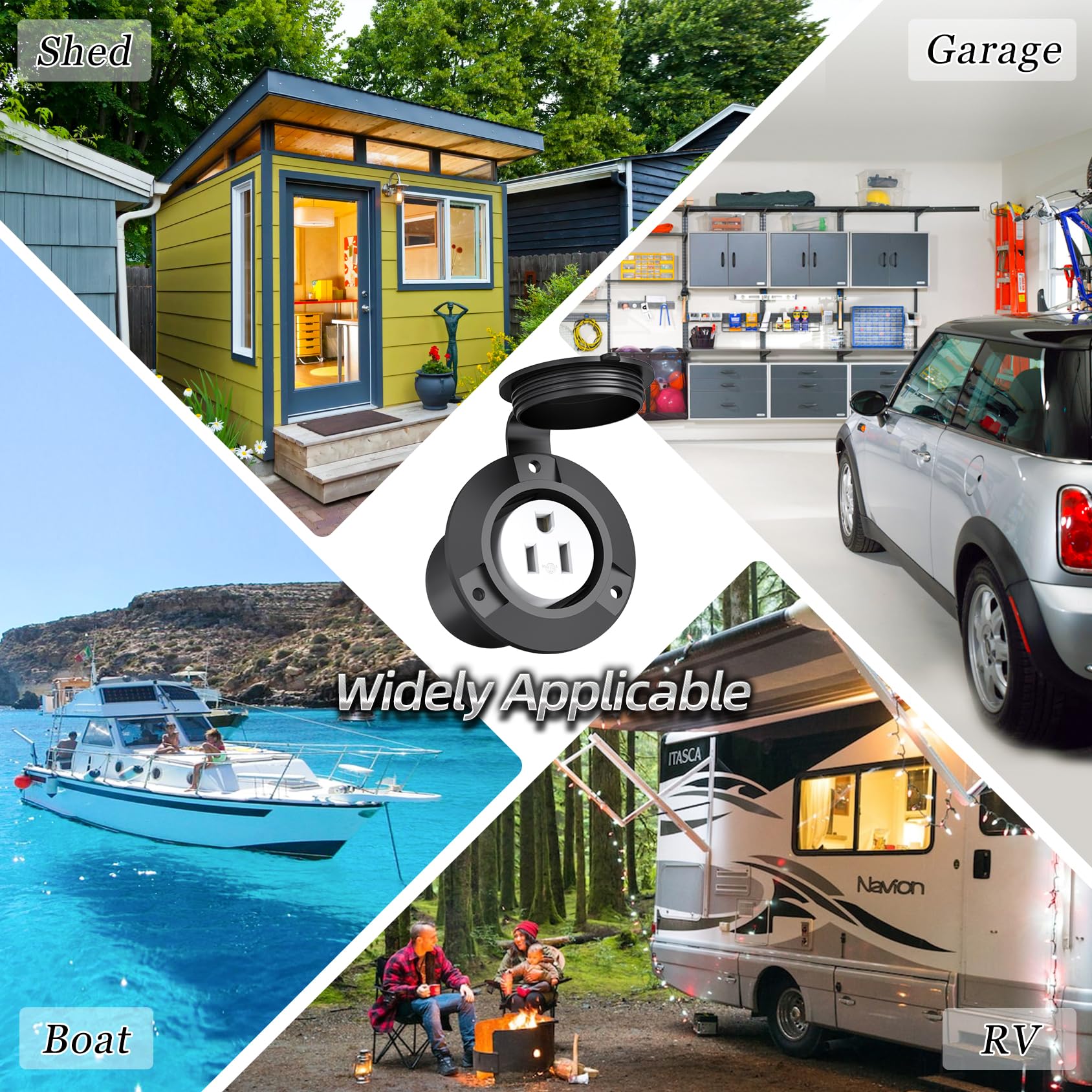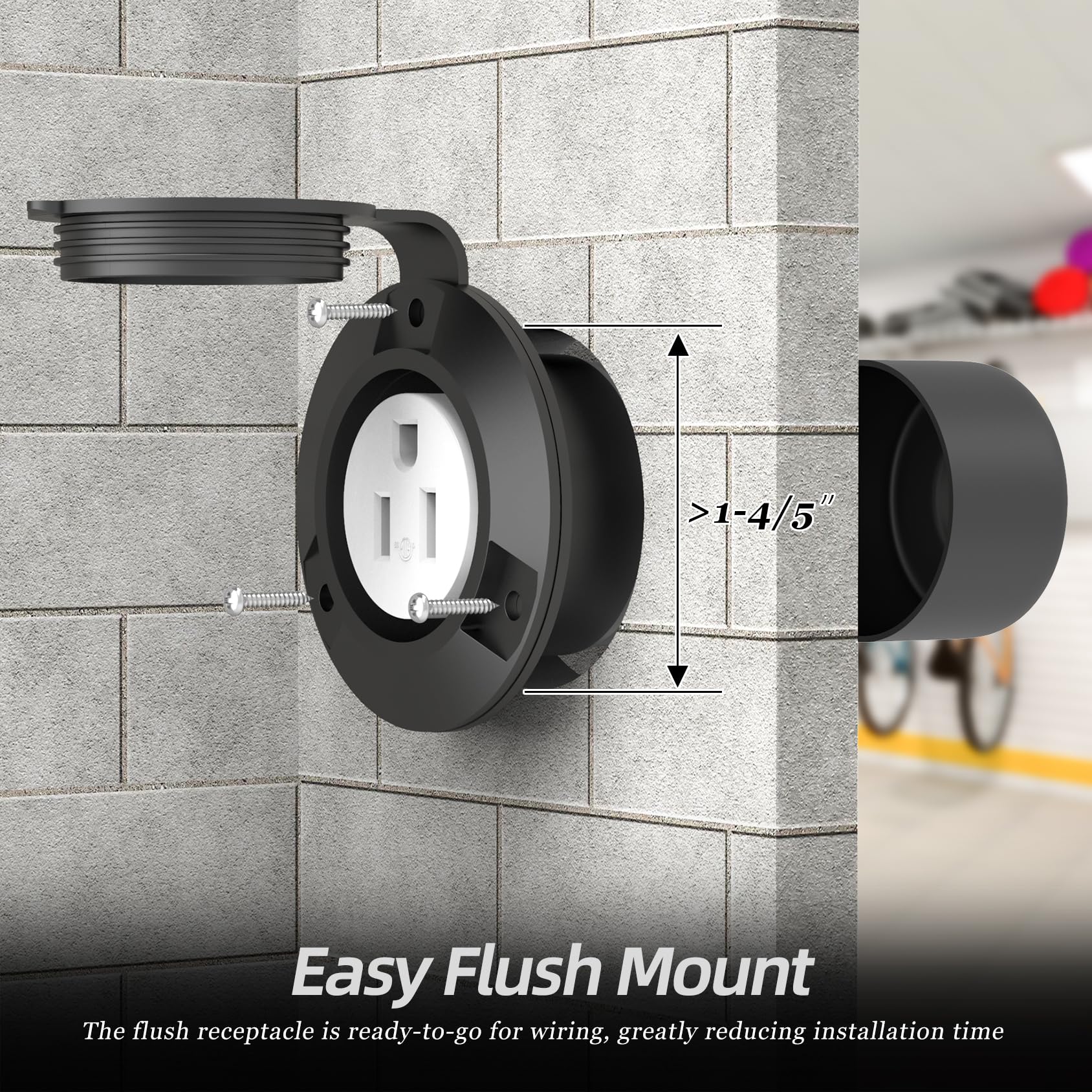 - Reliable Outdoor Power Outlet: The female flanged receptacle, which has passed ETL security testing, features terminal screws for secure electrical connections, ensuring a reliable and stable connection for plugged-in devices