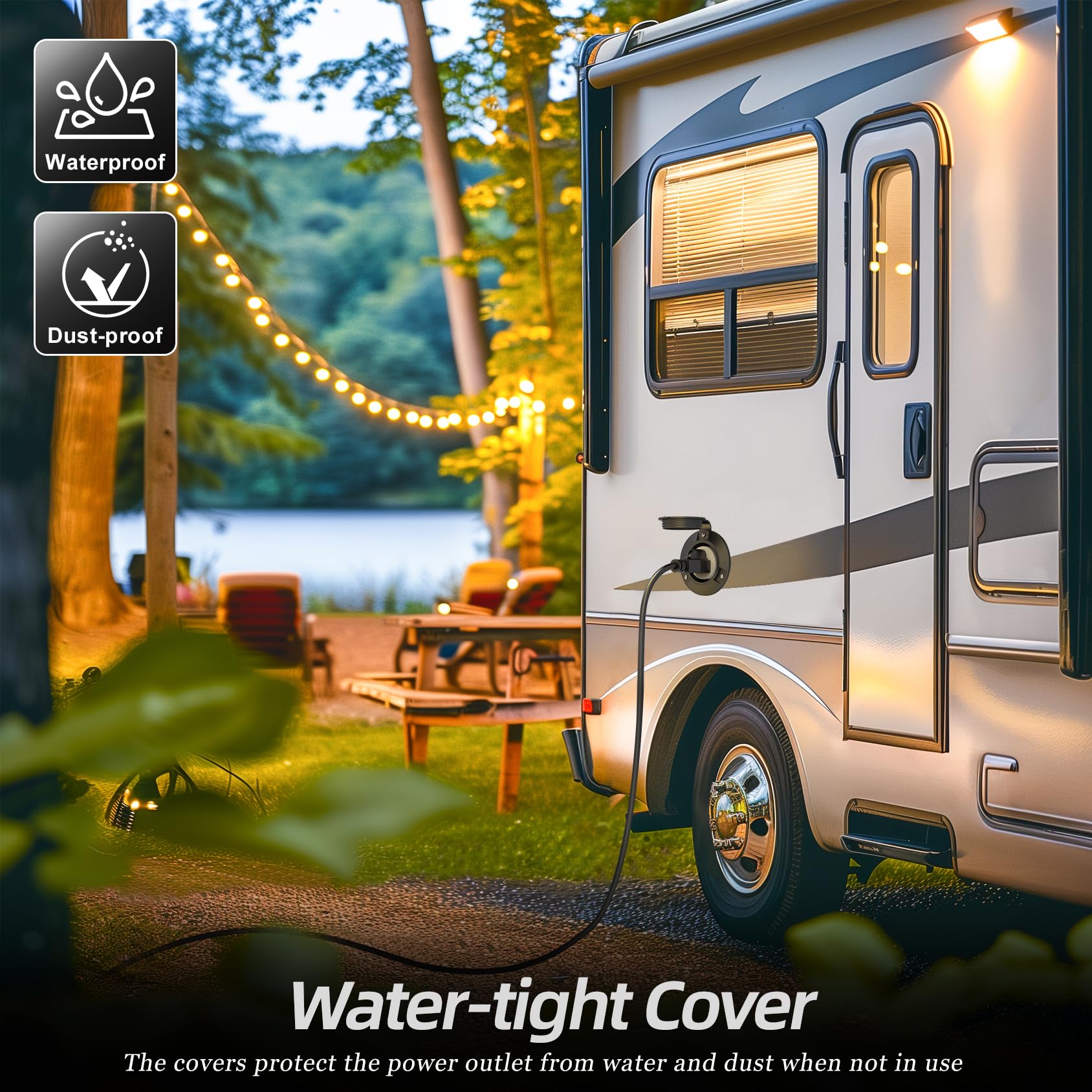 - Watertight Protective Covers: The AC port outlet comes with watertight protective covers made of soft rubber. These covers withstand the elements, preventing dust and water from causing damage, even during heavy rain or scorching heat, when the outlet is not in use
