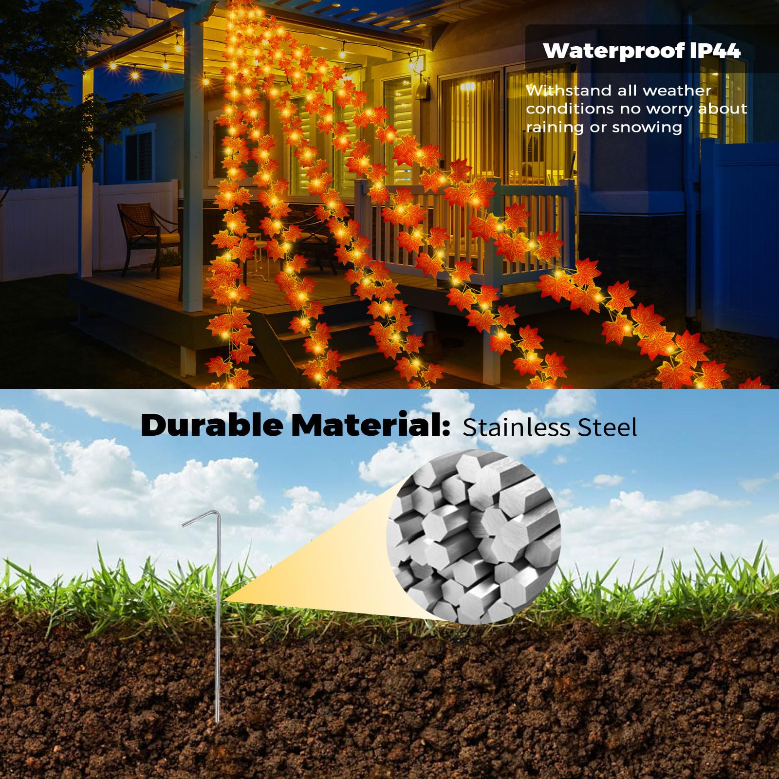 Details: 13.5FT*5 Branches Maple Leaf with Fairy Lights, Solar Powered Autumn Fall Decor String Lights, 8 Modes Waterproof Triangular Thanksgiving Lights Decorations for Eaves, Tree, Patio, Garden, Yard