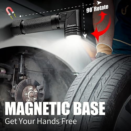 1300 Lumens Rechargeable Magnetic Flashlight, 6 Modes LED 90 Degree Flashlight Twist IP65 Waterproof High Bright EDC Pocket Torch, Tactical Flashlight for Camping, Emergency, Repair, Outdoor
