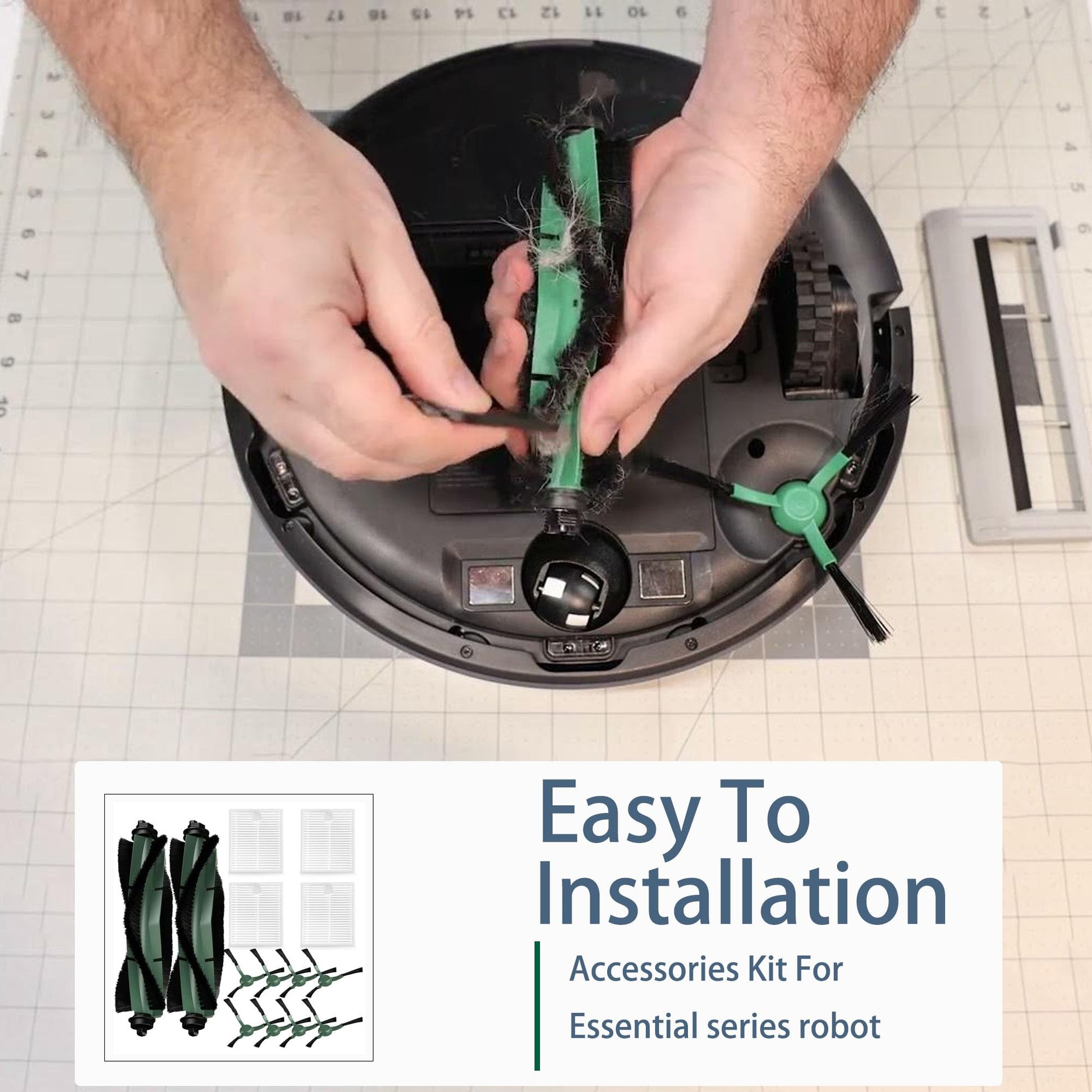 Details: 14 Pack Accessories Kit for iRobot Roomba Essential Series Q052-Vac2 105 Q0120 Y0140 Y0110 Q011 Robot Vacuum Cleaner,2 Roller Brush&8 Side Brushes&4 Hepa Filters
