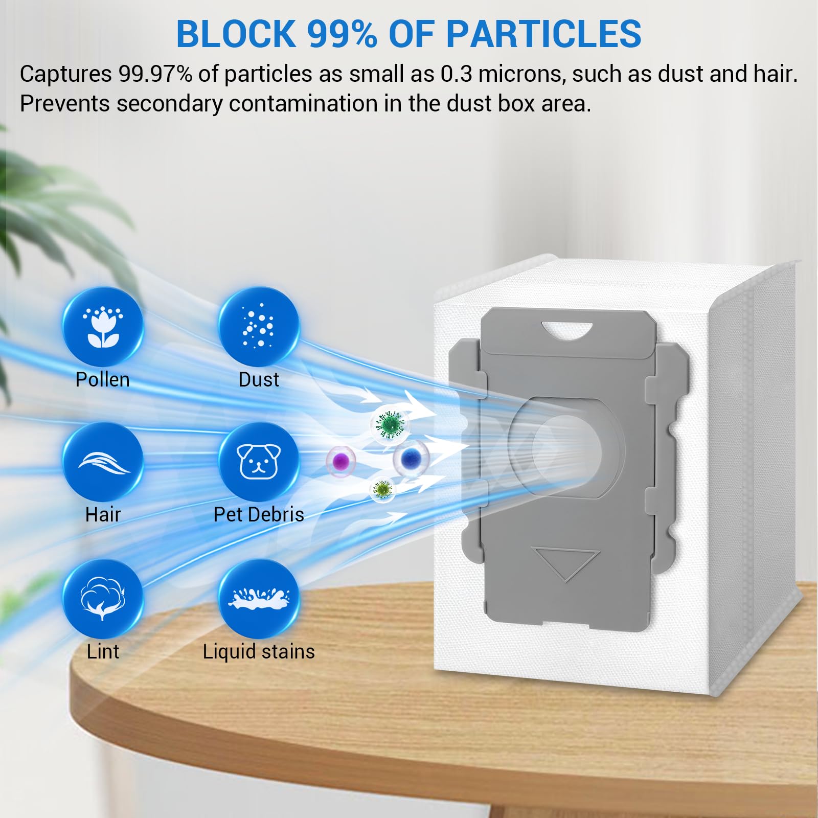 - 【Fit MODEL】- The Vacuum Bags Compatilbe with iRobot Roomba Bags i1 i1+ i3 i3+(3550) i4 i4+(4552) i6 i6+(6550) i7 i7+i7Plus (7550) j6 j6+(6550) j7 j7+(7550) i8+(8550) S9(9150) S9+(9550) i & s & j Series Vacuum Cleaners Automatic Dirt Disposal Bags.