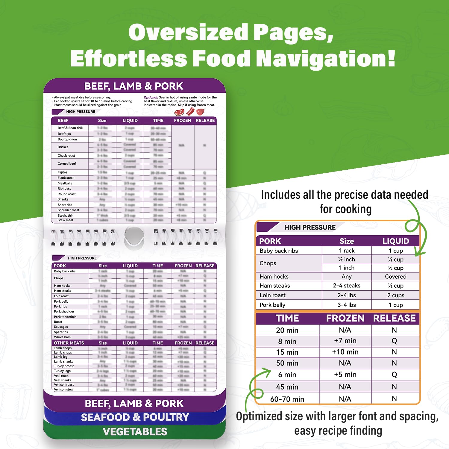 - 𝐄𝐱𝐩𝐚𝐧𝐝 𝐭𝐨 𝐎𝐯𝐞𝐫 𝟏𝟓𝟎+ 𝐅𝐨𝐨𝐝𝐬: Comprehensive instant pot accessories contains 150+ foods and 6 easy-to-navigate categories. Save time with easy access to cooking info. Efficient design elevate your instapot experience.