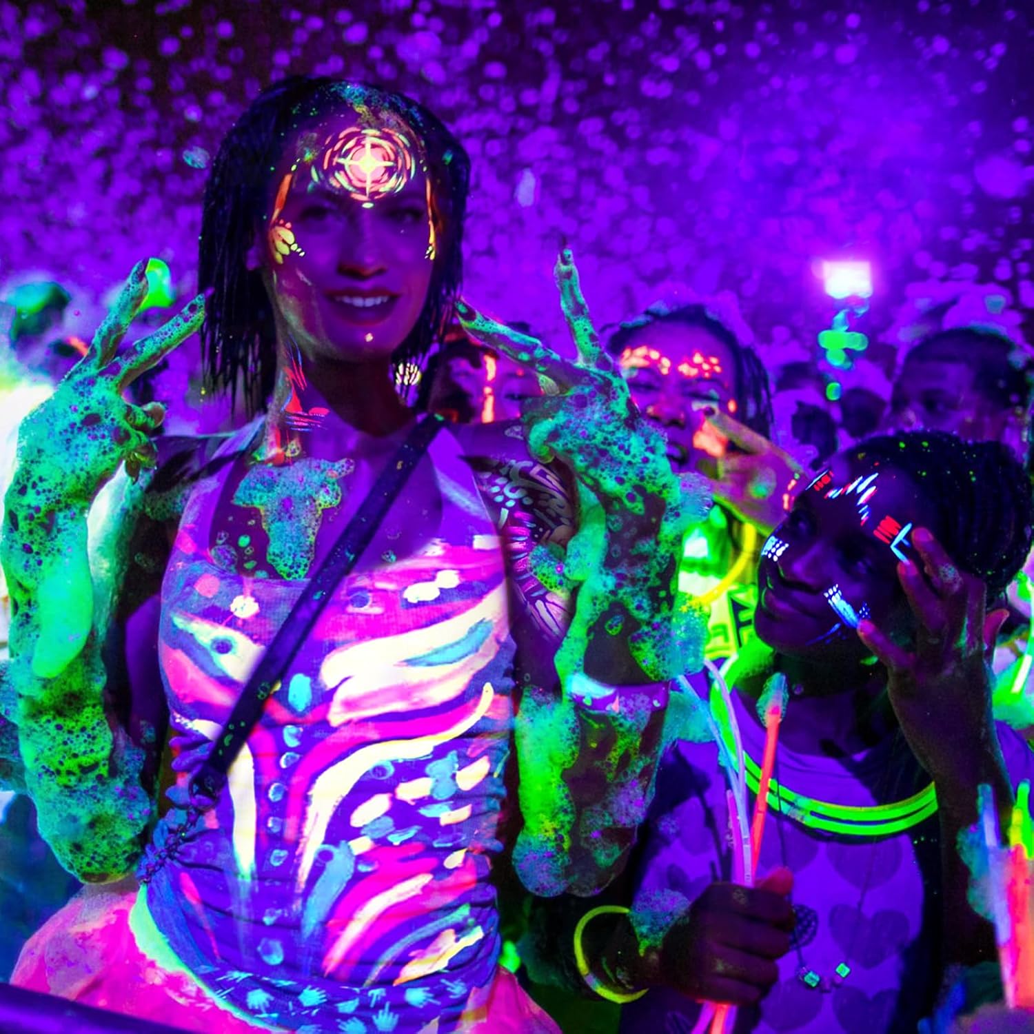 - Broad Area: One of the key features of the black light is its wide beam angle of 160 degrees, which allows it to illuminate a broad area with even, diffused light. Additionally, its wavelength range of 385-400 nm ensures that it effectively excites most active pigments, paints, dyes, and other substances. This excitation causes these substances to emit a visually cool glow, creating a unique and exciting visual experience