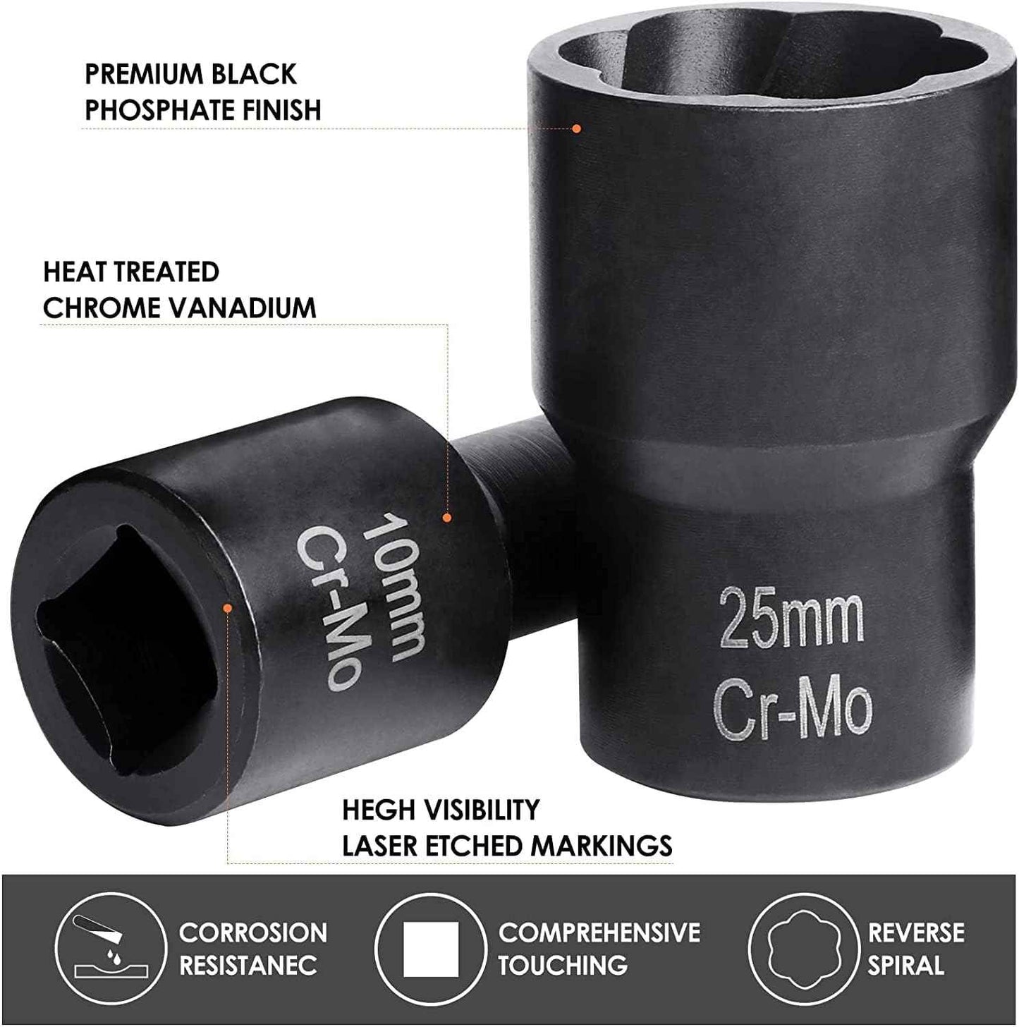 - 🔩🔧 ⚙️Accurate and diverse nut extractor sizes:8mm, 10mm, 12mm, 13mm, 14mm, 15mm, 16mm, 17mm, 19mm, 21mm, 22mm,24mm, 25mm, 27mm, which can meet various needs that are usually required, whether it is car repair or home repair, can provide you with Great convenience