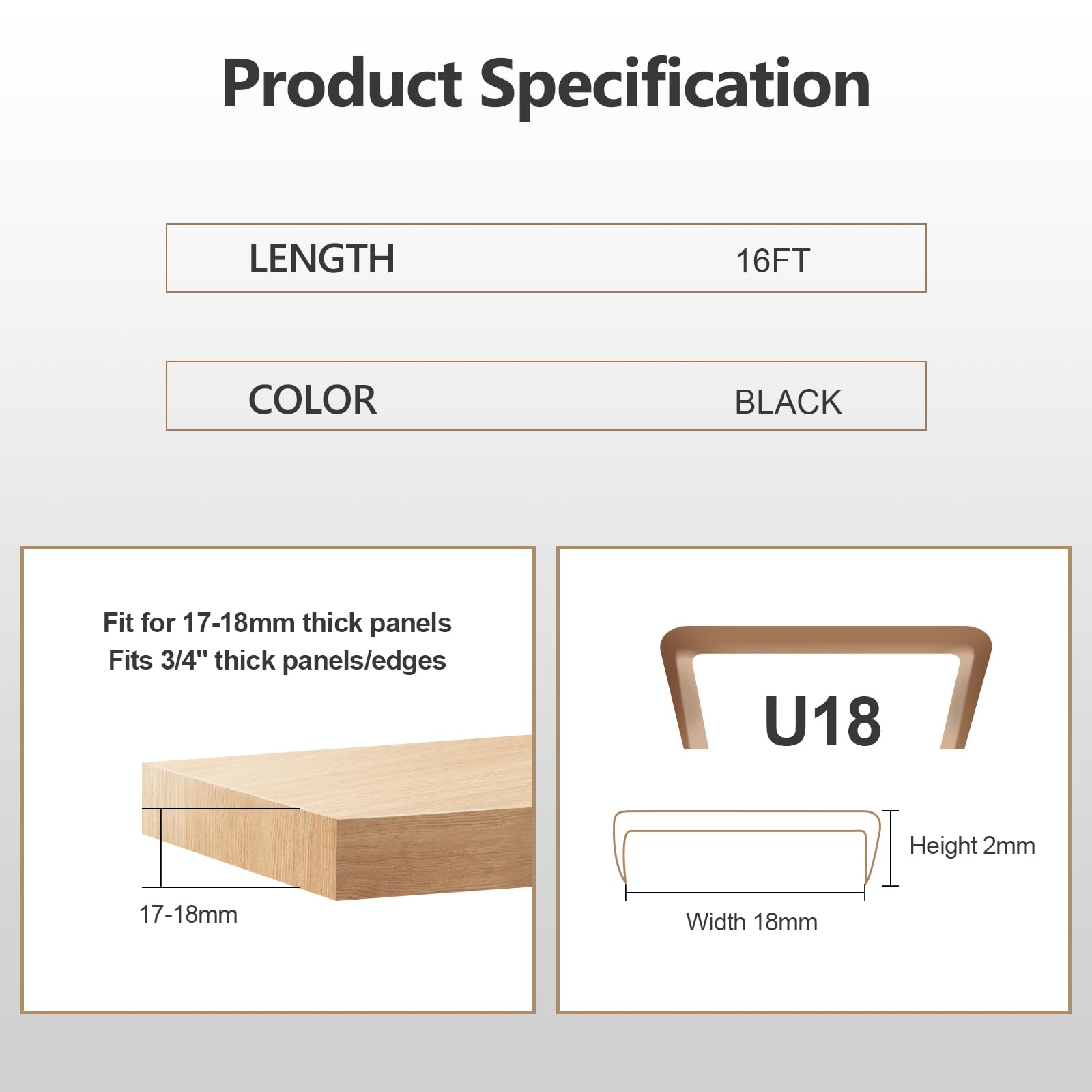 - Size Detail: 18mm(width) x 16feet(length). Fits 3/4 inch thick panels. Suitable for 17-18mm thick panels. Package list: 1 * Self adhesive edge banding