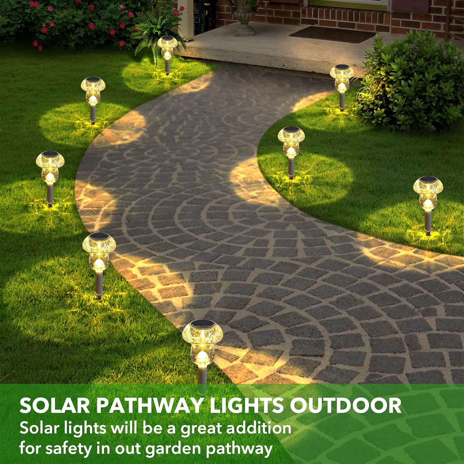 - 【All Weatherproof]】Our solar lights outdoor pathway are built to withstand any weather condition, they are well-protected against rain, snow, frost, and sleet. The advanced battery ensures stability and resistance to extreme temperatures, high-resistance ABS plastic ensures longer service life. You can use solar pathway lights with confidence all year round.
