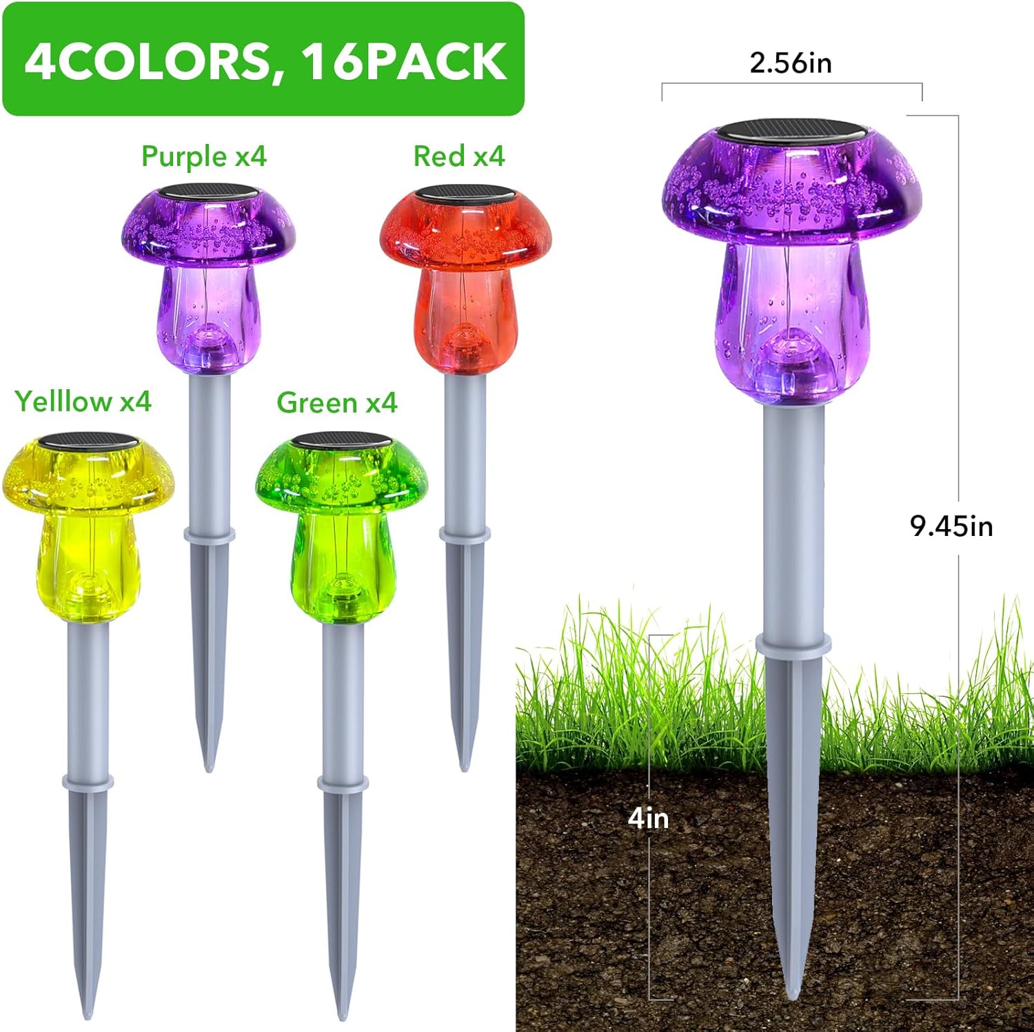 16 Pack Solar Powered Mushroom Lights - Waterproof LED Garden Pathway Lighting for Yard & Landscape Decor (Purple)