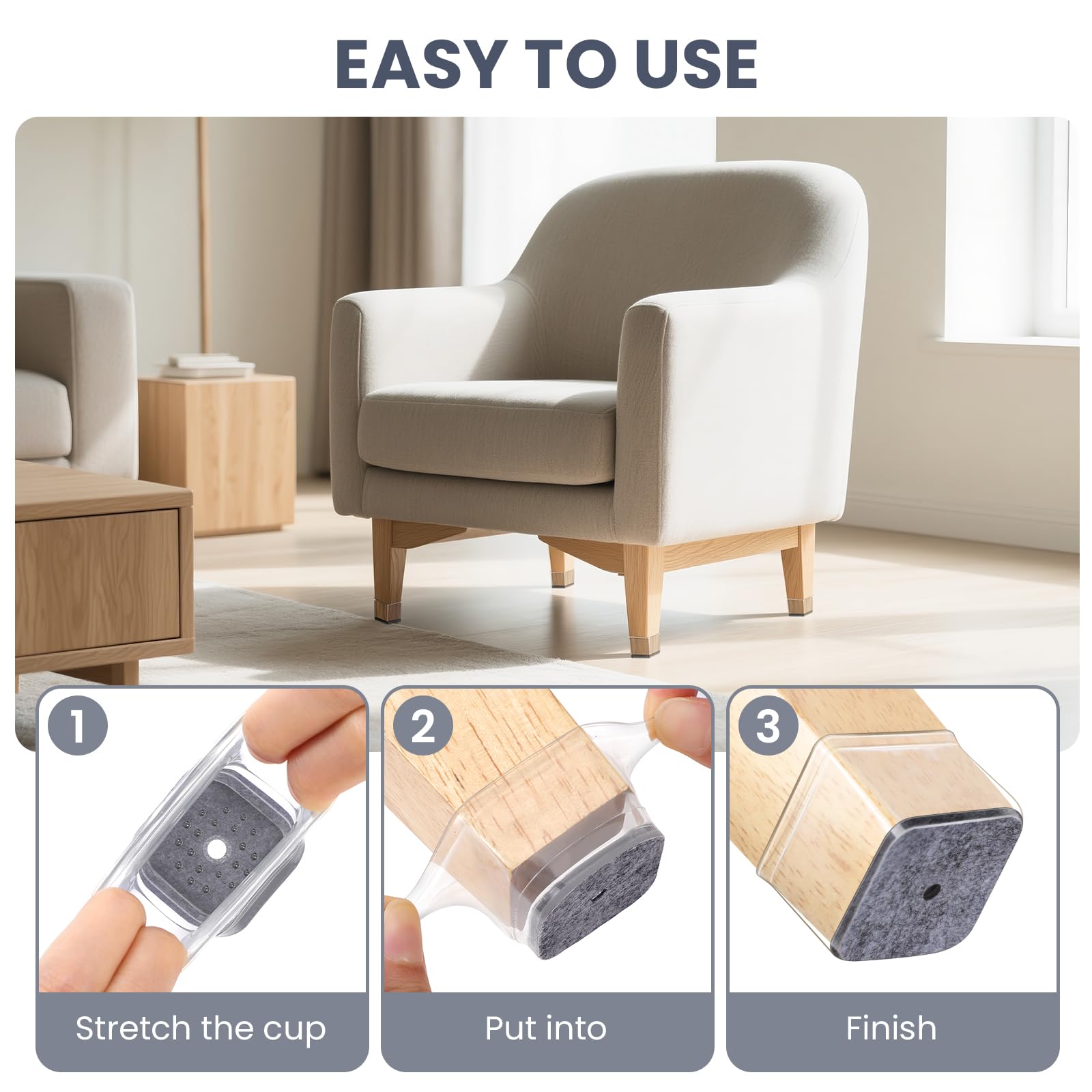 - 【Easy to Install】 Our chair leg covers are made of strong elastic soft silicone, which is super stretched and won't tear. Put it on directly to use, no need to paste, no tools needed.