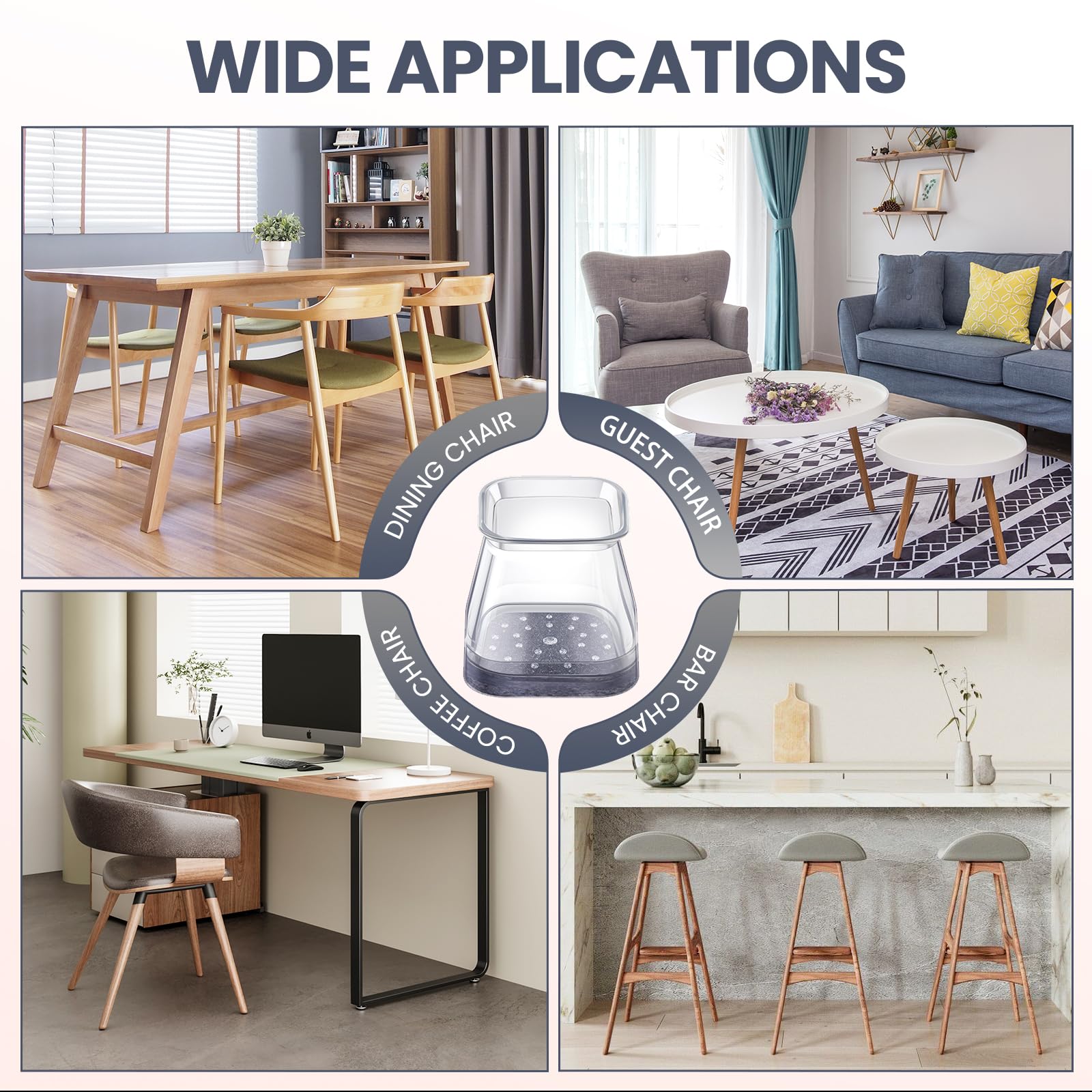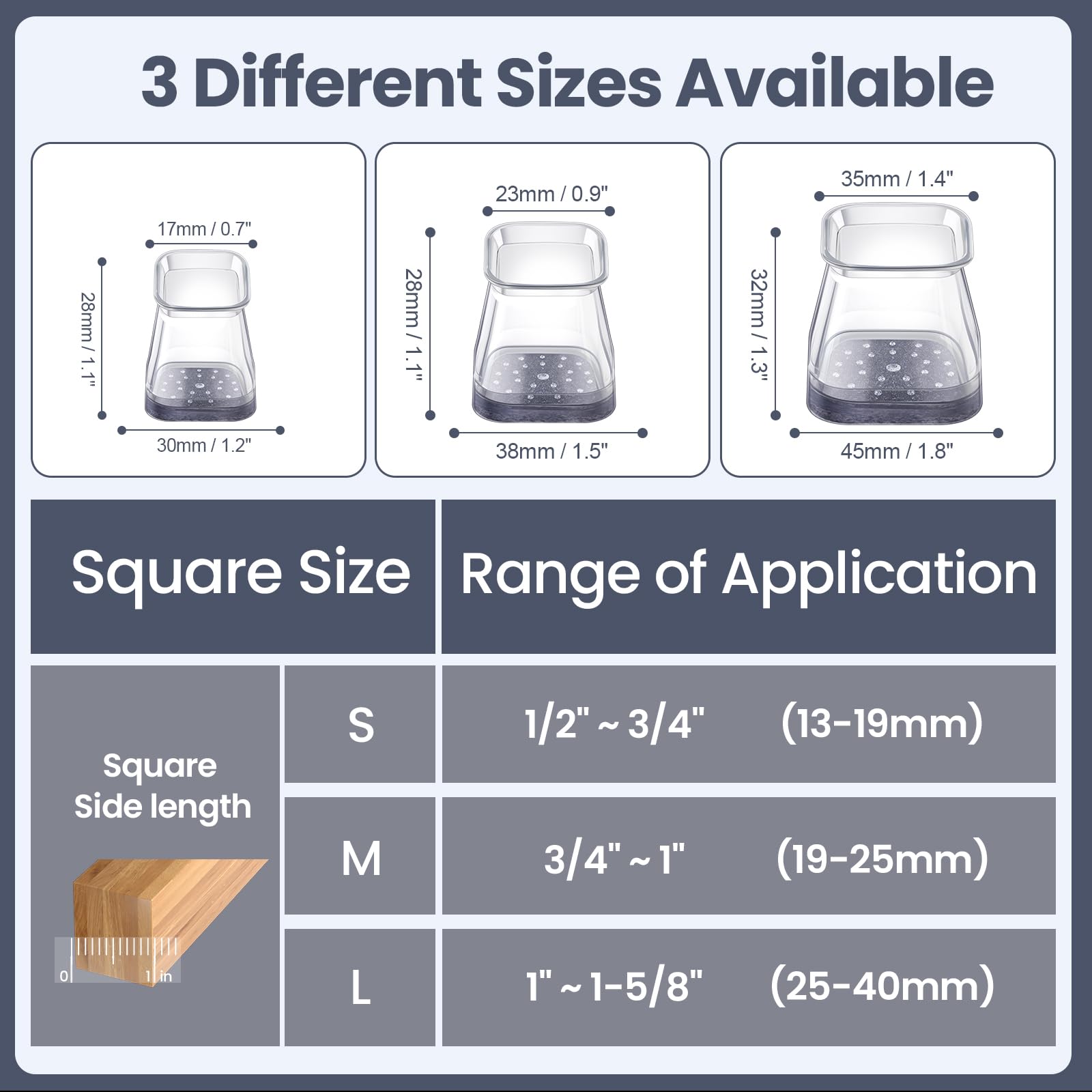 16 Pcs Chair Leg Floor Protectors Square for Hardwood Floors - Silicone Felt Furniture Pads - Chair Leg Caps - Clear Rubber Chair Sliders - L(Fit:1"-1.5")