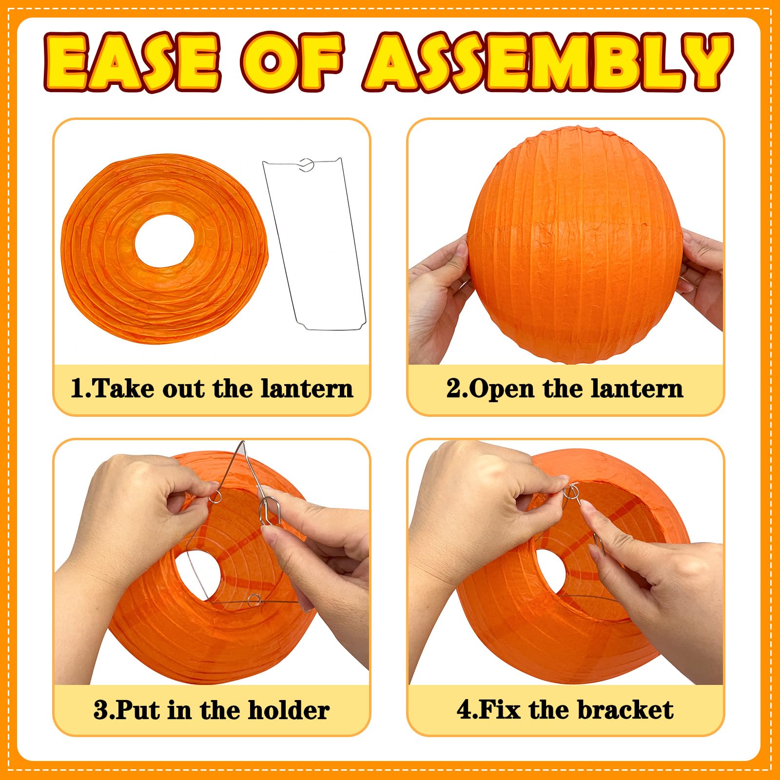- 【Material】: Our orange fall paper lanterns are made of quality thin paper and wire bracket. They are lightweight and biodegradable, and effortless to hang and store. More environmentally friendly than traditional balloon decorations.