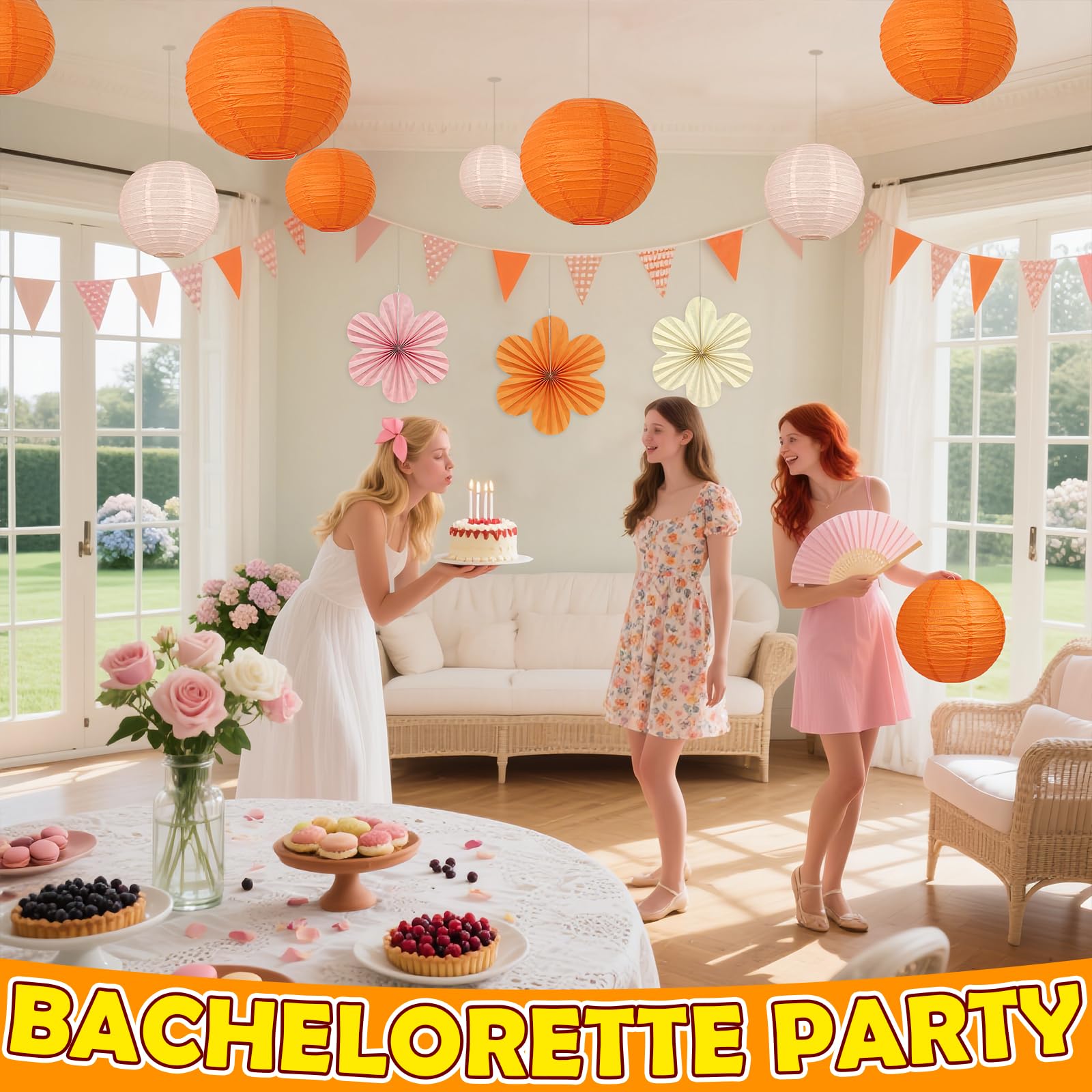 - 【Nice addition to orange party decor】: These orange paper lanterns party decorations set is great ideal for bachelorette, bridal shower, baby shower, engagement party decor, wedding, anniversary, fall party decorations, sunset party decorations, Thanksgiving birthday decorations, Halloween party decorations, fall classroom decorations, celebration and other themed parties. They can also be used to decorate for home, garden, office, school and store, etc.