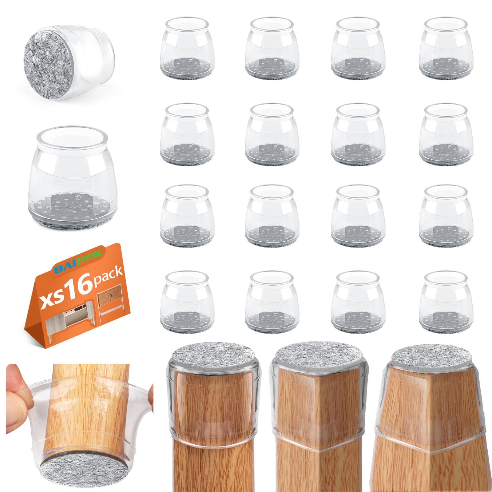 16pcs Round Chair Leg Floor Protectors, Felt Pads Chair Leg Protectors for Hardwood Floors, Silicone Chair Leg Cups Covers Felt Pads, Prevents Scratches & Reduce Noise, Clear, X-Small
