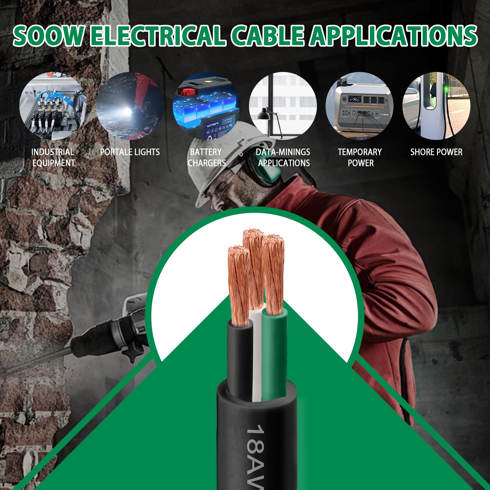 - Built for Extreme Conditions: Engineered for industrial, commercial, and outdoor use, our heavy-duty 18 AWG 300V SJOOW cable offers rugged durability. Its oil, water, and acid-resistant PVC jacket and robust insulation withstand harsh chemicals and environments (-40℃ to 90℃), ensuring reliable performance.