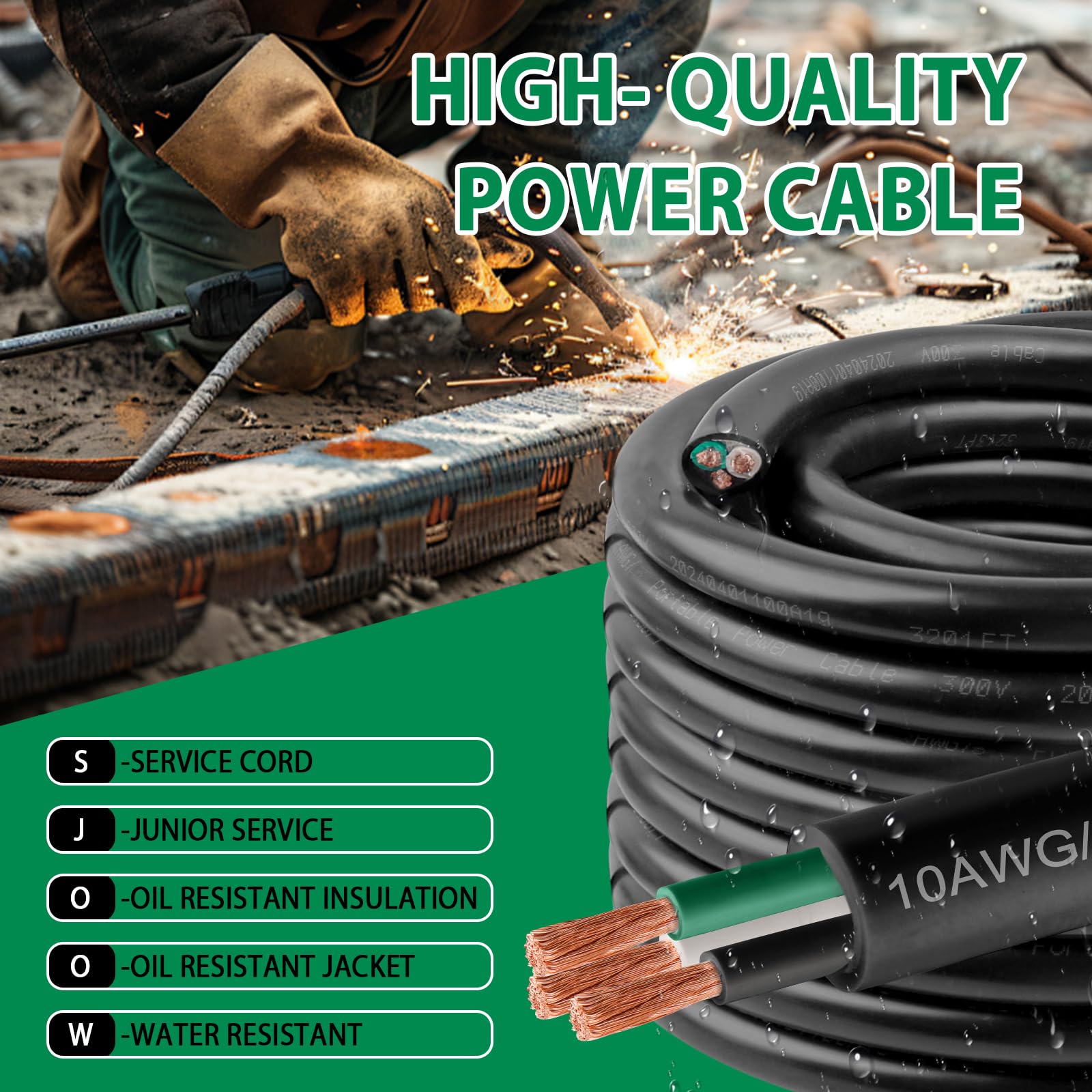 - Common Uses for SJOOW Cable: This 3-conductor cable is ideal for: distributing power in industrial facilities; powering portable tools, lighting, and equipment at construction sites, events, and for emergency services; running outdoor equipment like pumps, generators, and lights; supplying temporary power for events/shows; connecting heavy-duty equipment (motors, transformers); and marine applications on ships and boats.