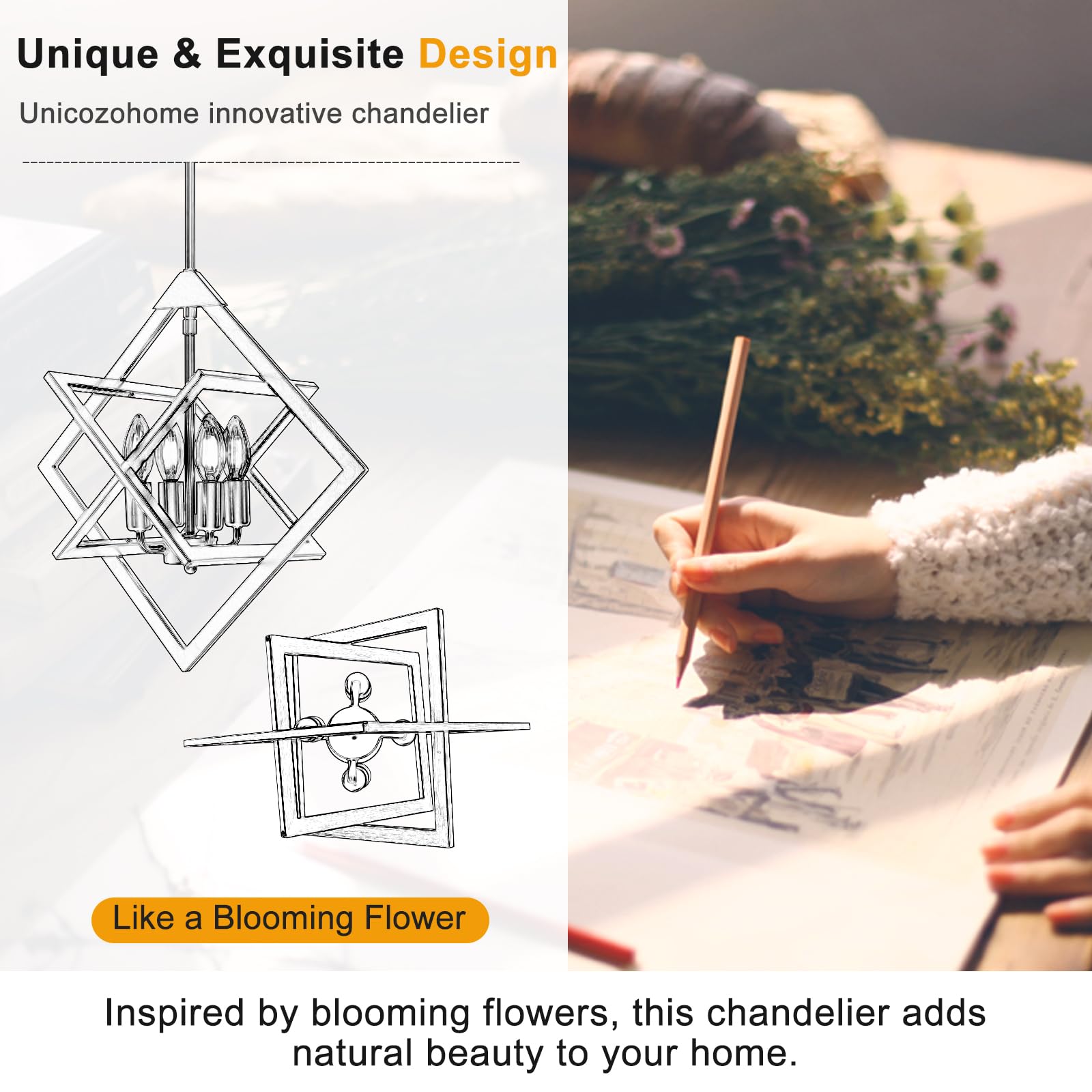 - Beautiful Geometric Chandelier Designs Inspiration - Featured with gold center candlestick and geometric outward appearance, the geometric lantern chandelier is a wonderful addition to add farmhouse style to your home décor. Artistic and eye-catching, it can perfectly blend in any place such as bedroom, living room, bathroom, dining room, hallway or kitchen island (indoor use only).