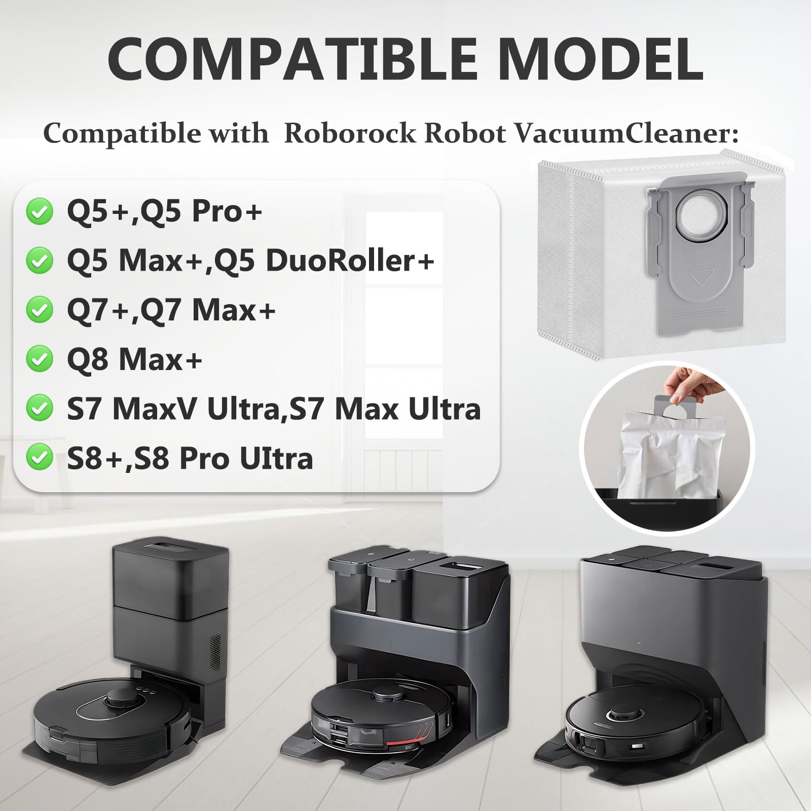 - Specifically Designed: These Q5 dust bags are engineered for optimal performance with Compatible for Roborock Q5 Max+, Q5, Q5+, Q5 Pro+, Q7 Max+, Q7 Max, Q7, and Q7+ Robot Vacuums.