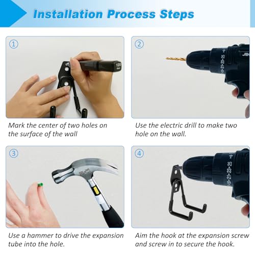 - Easy Installation: Place the garage storage hook on the wall where you want to install, mark the screw holes for the hook with a marker, select the correct anchor bolt and install it in the marked screw holes, then fix the hook to the wall. The entire installation process requires an electric drill, screwdriver and hammer.