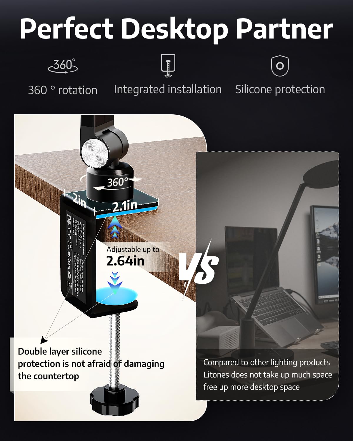 - 【More Power + More Flexible and Higher】: The desk light for home office offers more power and height than a typical ring light for desks, providing expansive illumination and wide-angle coverage. Equipped with five aviation-grade aluminum alloy rotary knobs, it offers a high level of flexibility, perfectly meeting the lighting needs of your entire workspace. Ideal for video lighting, zoom meetings, video recording or computer lighting