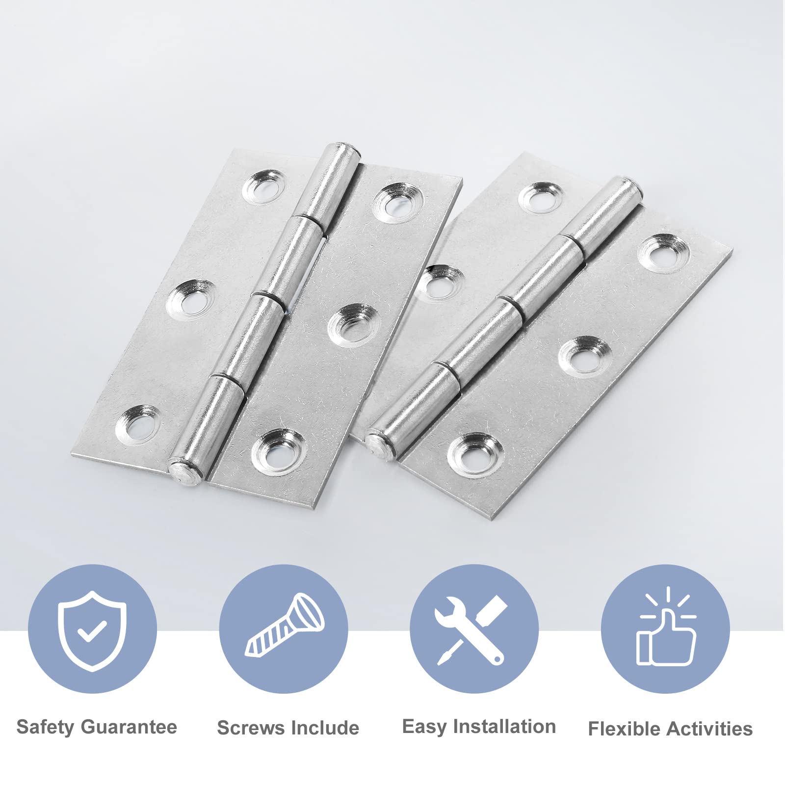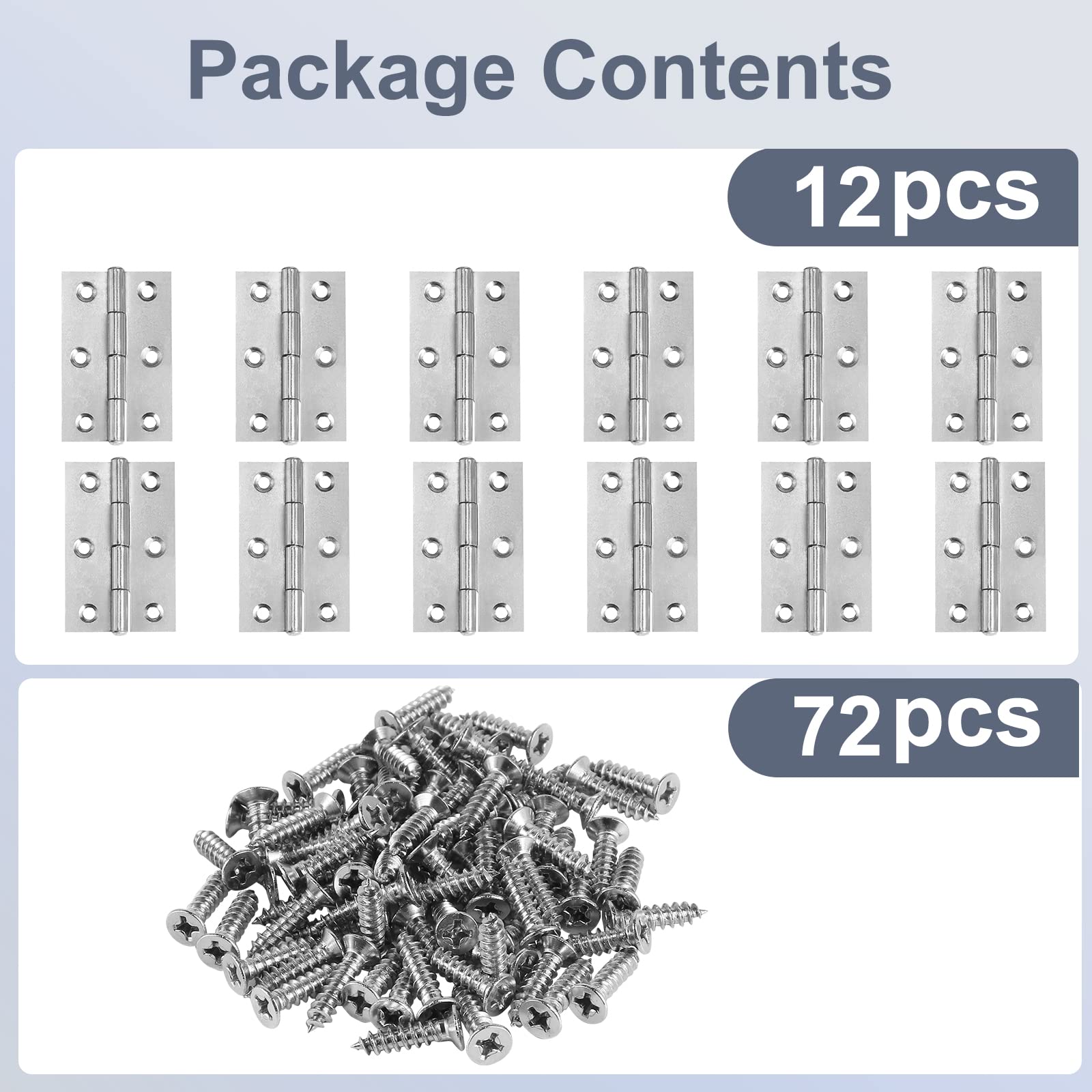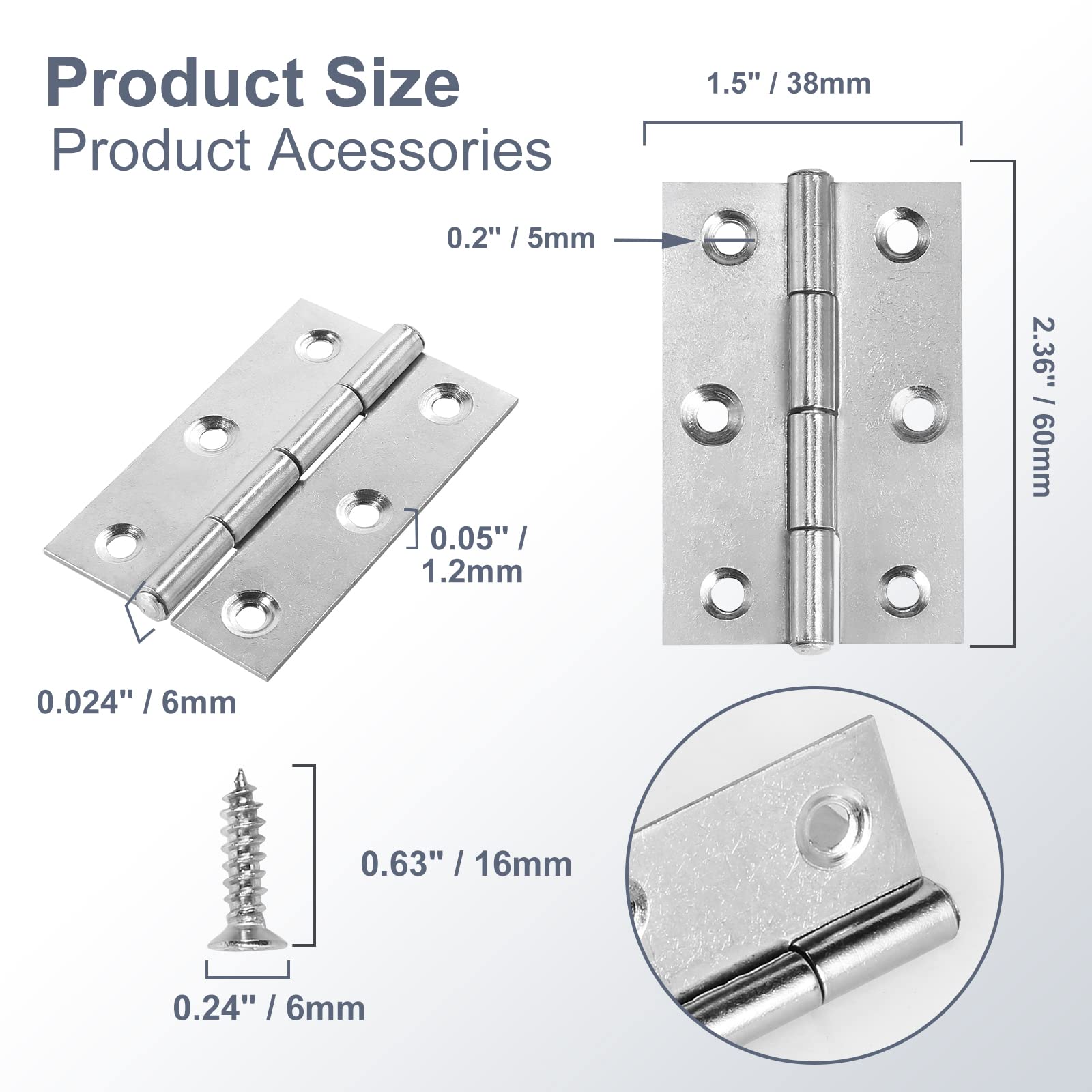 2-3/8" Door Hinge, Zernmiarder 12 Pcs Stainless Steel Butt Hinges, Silver Window Hinges, Interior and Outdoor Hinge with Screws, 60 x 38 x 1.2mm
