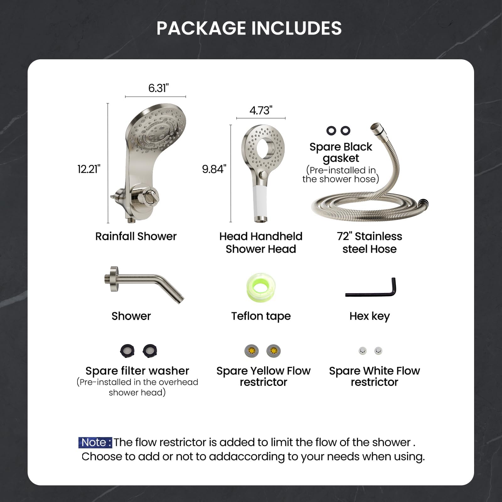 2 IN 1 Anti Clogging High Pressure Magnetic Shower Heads With Handheld Spray Combo And Shower Faucet Set Brushed Nickel Detachable Dual Shower Head, 8 Spray Modes