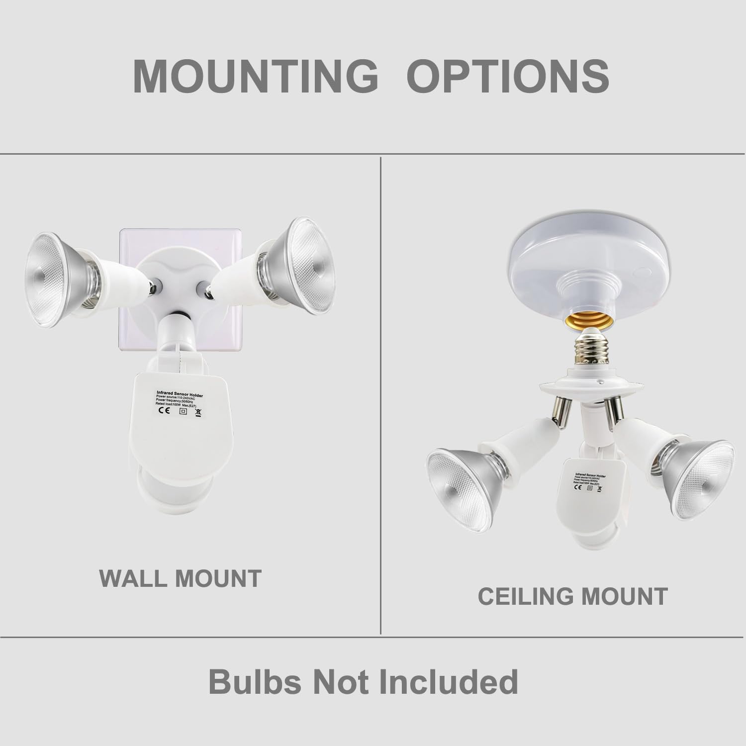 - Dual Mount: it has two installation options: you can mount it on a wall or ceiling.But atfer installing,make sure the sensor is facing the desired motion area with the proper distance and angle
