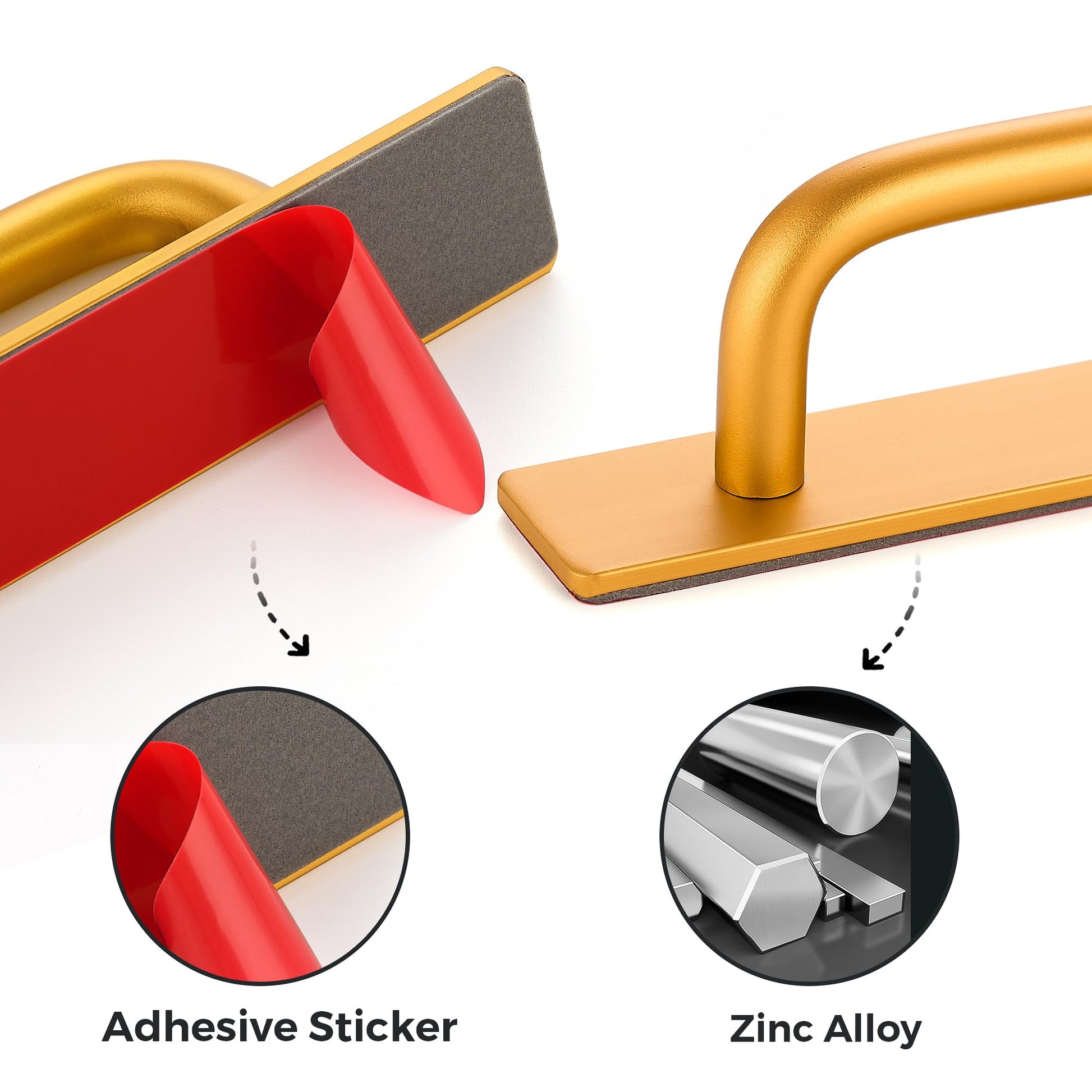 - Convenient Adhesive Design: These gold adhesive door handles give your cabinets a modern, simple look. Ideal for pocket doors, sliding closets, bifold doors, glass windows, as well as cabinets, wardrobe drawers, and kitchen applications