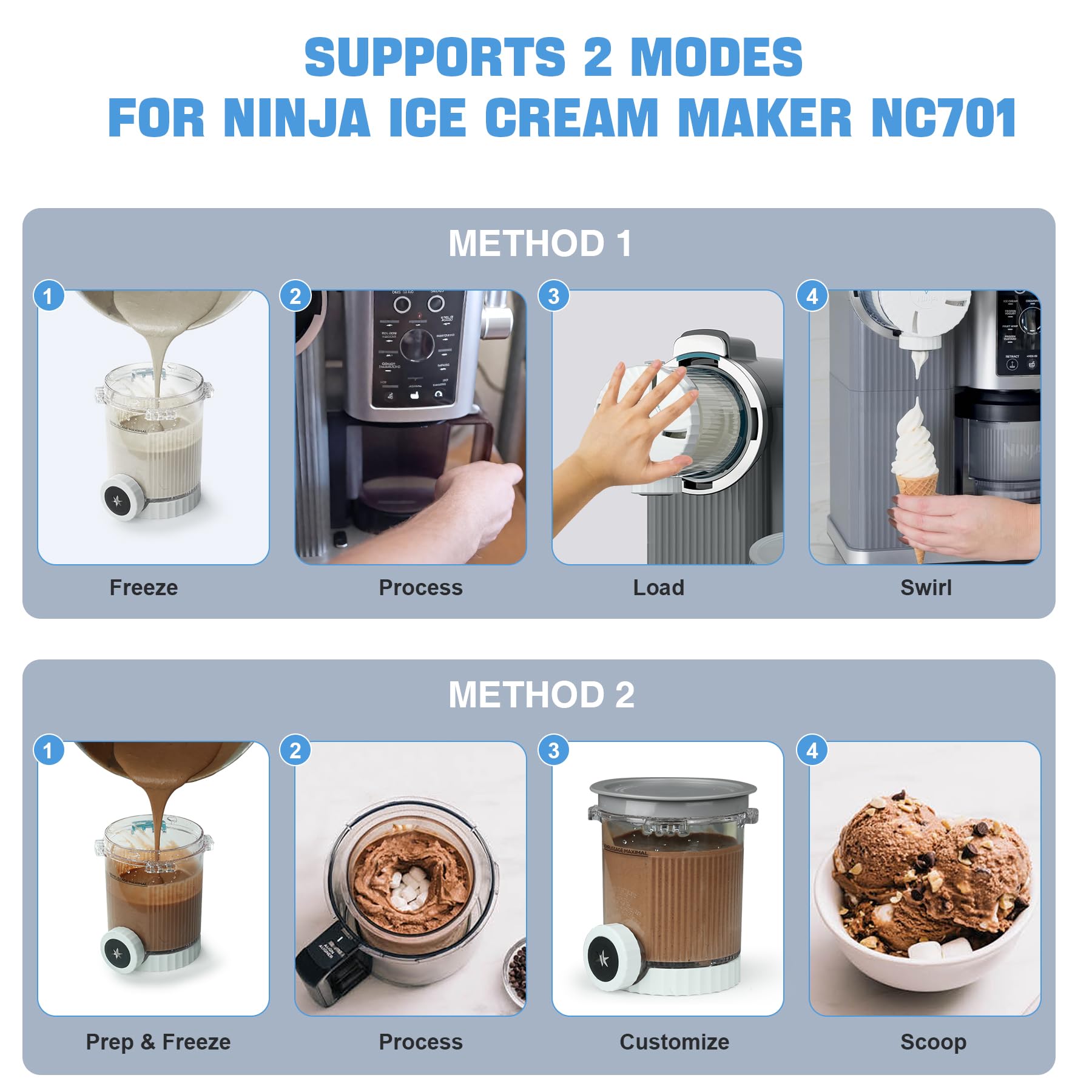 - COMPATIBILITY: This pint will ONLY fit the Ninja Swirl by CREAMi NC700/NC701 Series Ice Cream Makers. It will NOT fit the NC300, NC500, NC100 or NC200 Series; please make sure you are purchasing for the correct unit. WHICH CREAMI DO I HAVE? : To check which unit you have, locate the sku number at the bottom of your unit. All NC700 series skus will work with this pint.