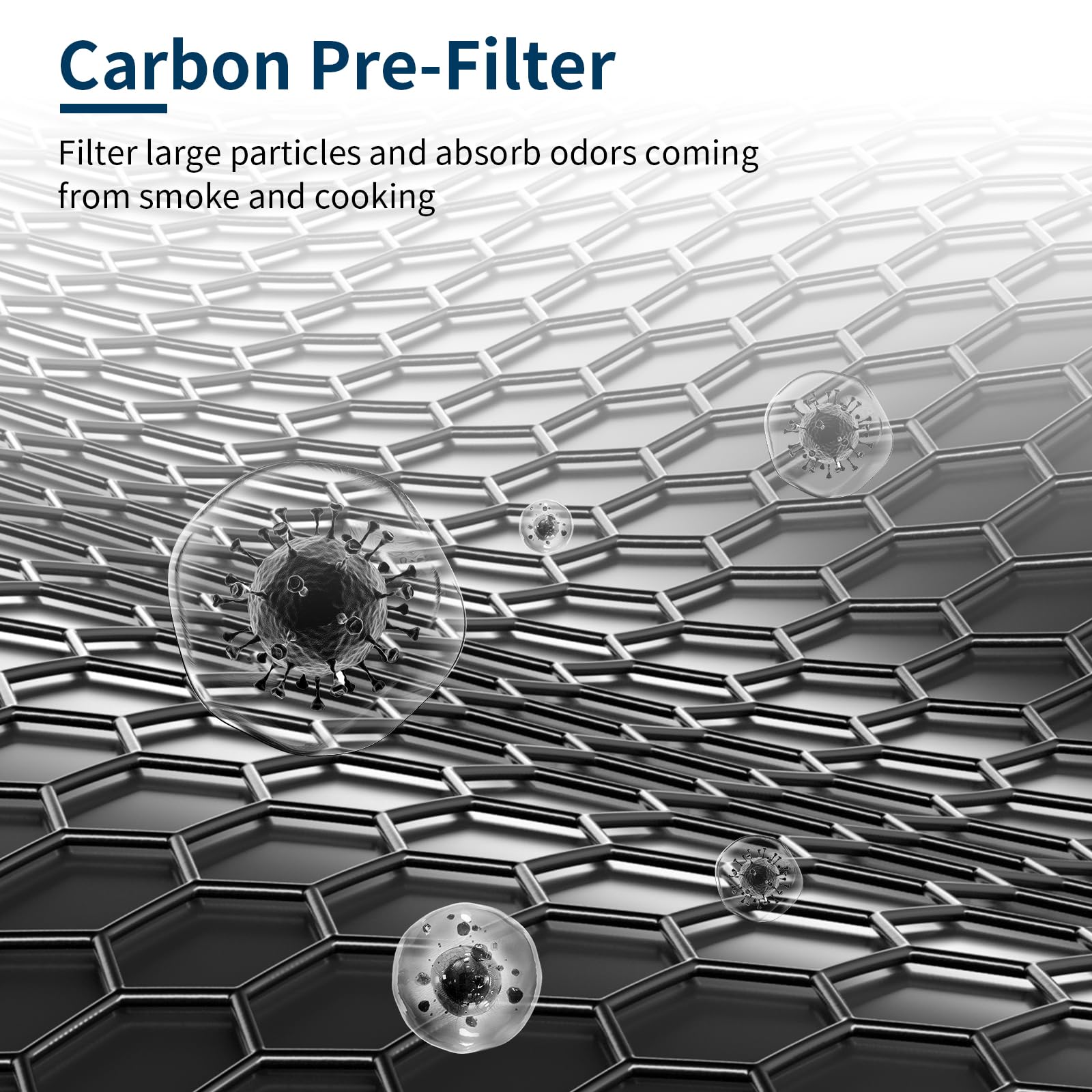 - Activated Carbon Layer: The activated carbon pre-filter can absorb unpleasant household odors such as smoke, cooking fume and pet odor, and keep your living environment fresh and comfortable.