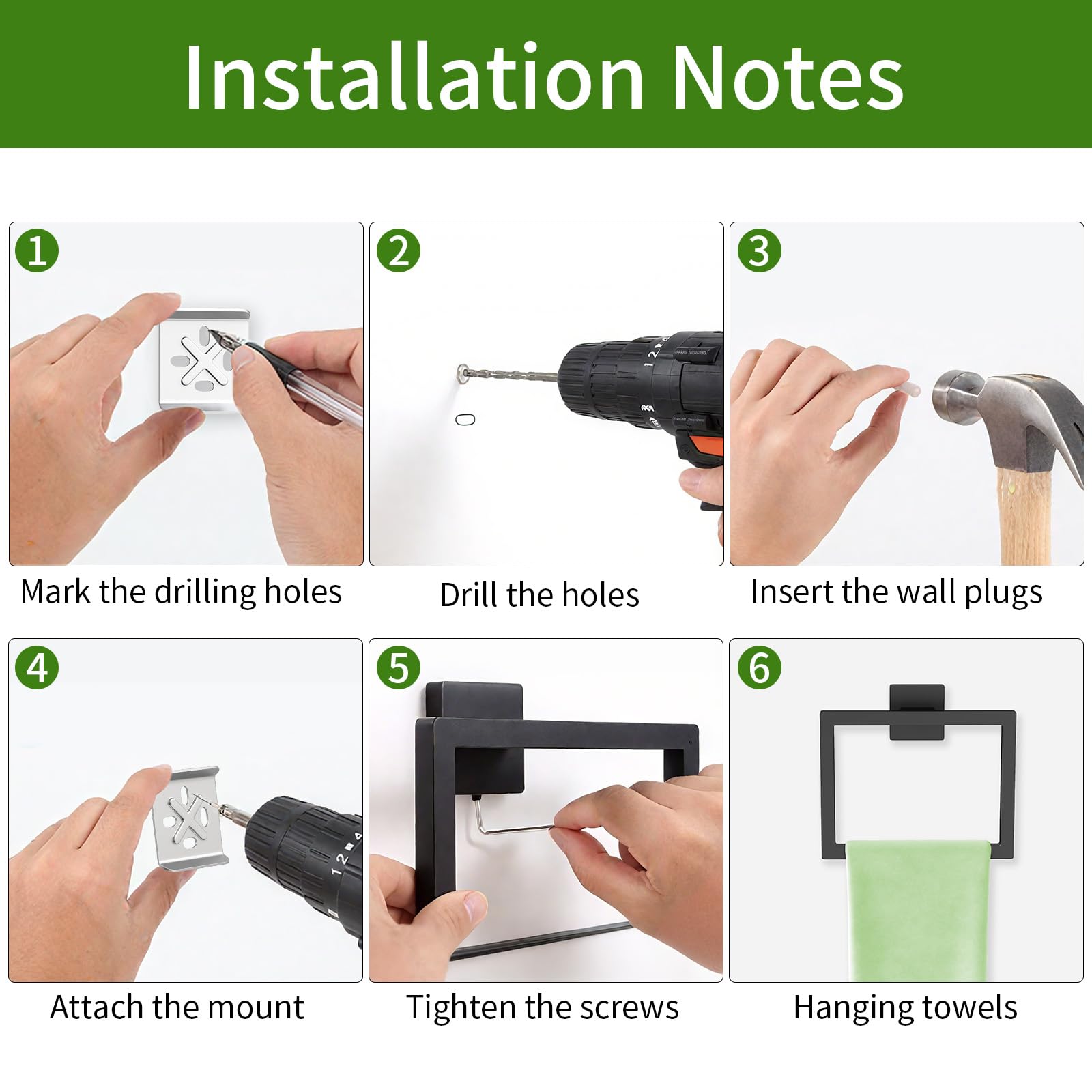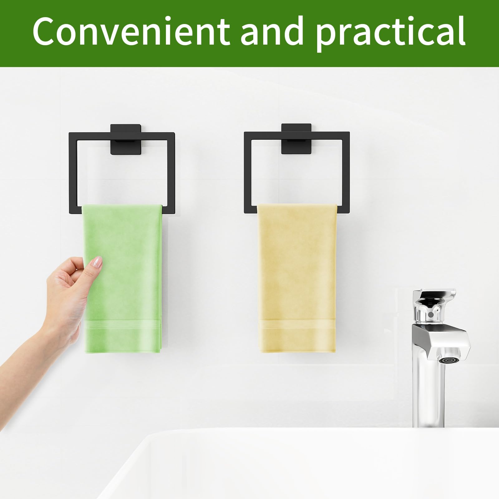 - 【2 Piece Towel Rings】Bathroom towel hanger includes 2 square towel rings can meet all your daily needs and match your bathroom fixtures perfectly