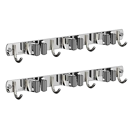 - STURDY AND FUNCTIONAL:The mop and broom holder wall mount is made of premium quality stainless steel, corrosion-resistant, rustproof and waterproof,wear-resistant, long-lasting and easy to clean