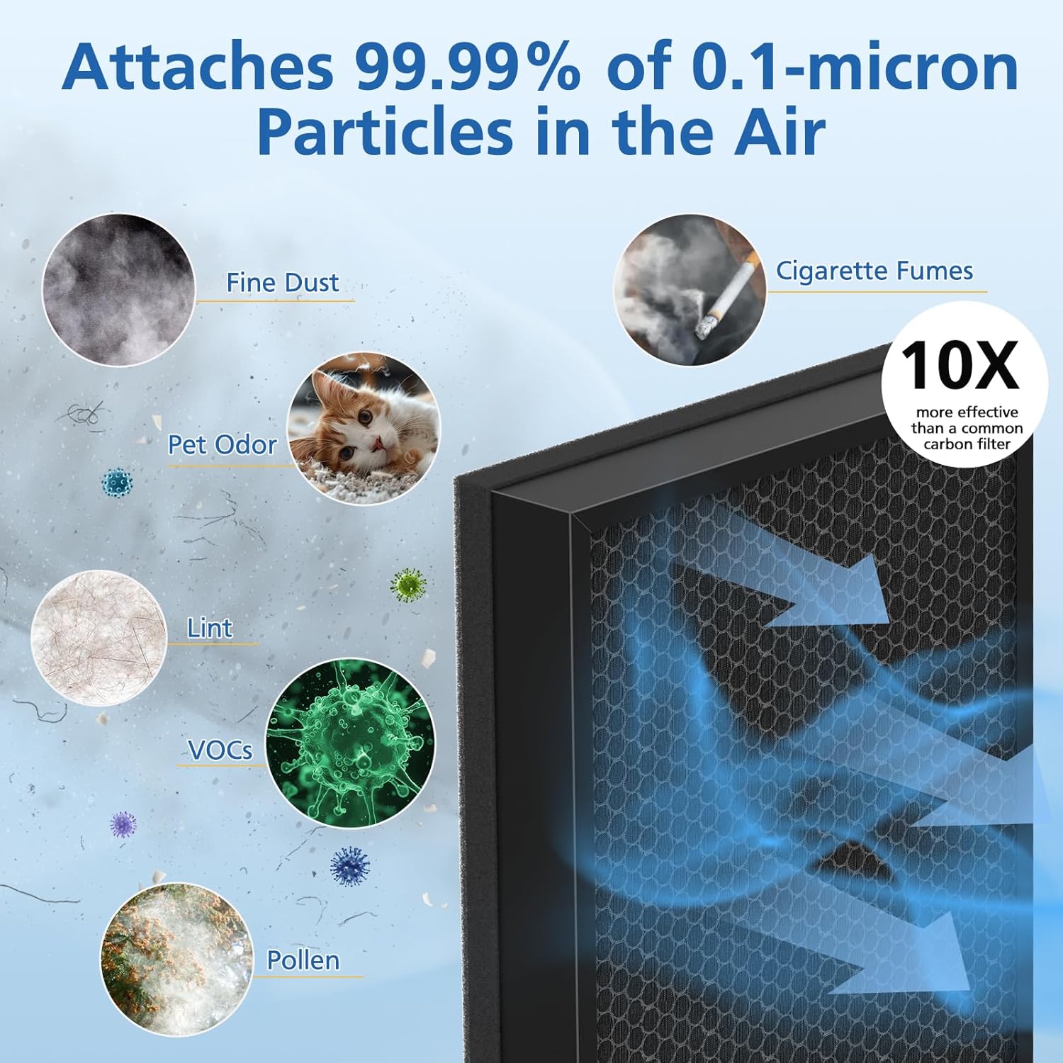 2-Pack Replacement Filters for Puro 400 Air Purifier - 3-in-1 Activated Carbon System for 99.97% Air Pollutants