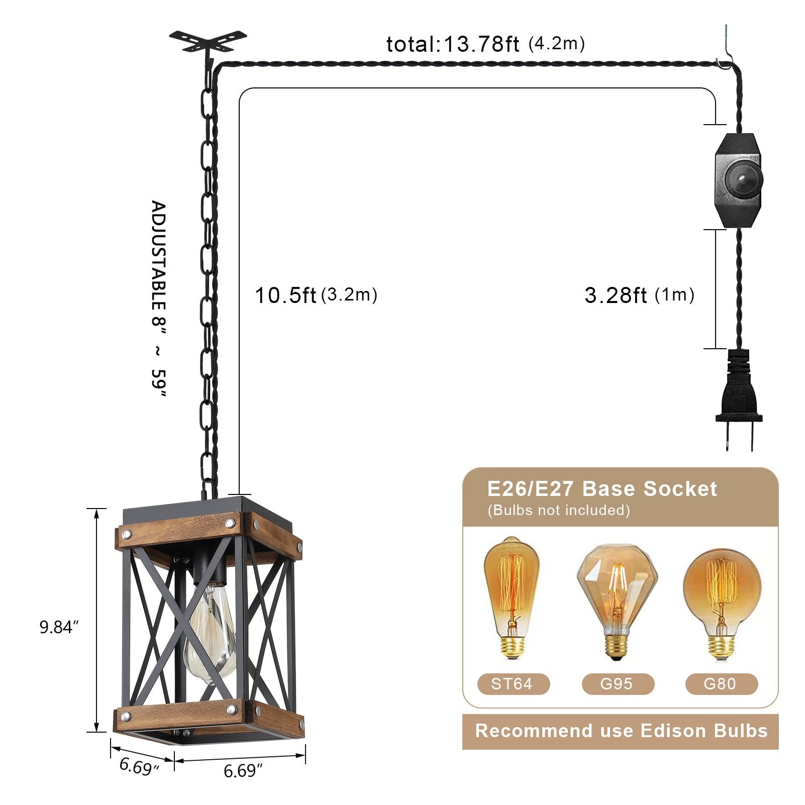 - Measurements: Length 6.69" x W 6.69" x Height 9.84". Adjustable 15ft cord and 59 inch chain allows you to customize the fixture to your lighting needs and desired look