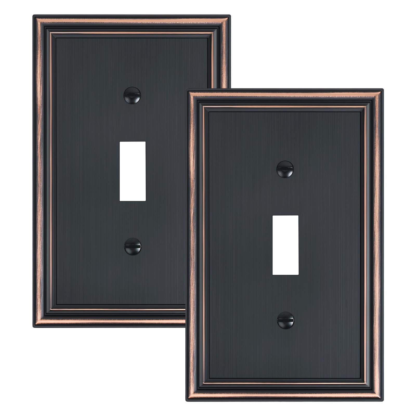 2-Pack Single Toggle Light Switch Cover Plate, Durable Solid Zinc Alloy Decorative Switch Plate Covers, Aged Bronze 1 Gang Wall Plate, Corrosion Resistant