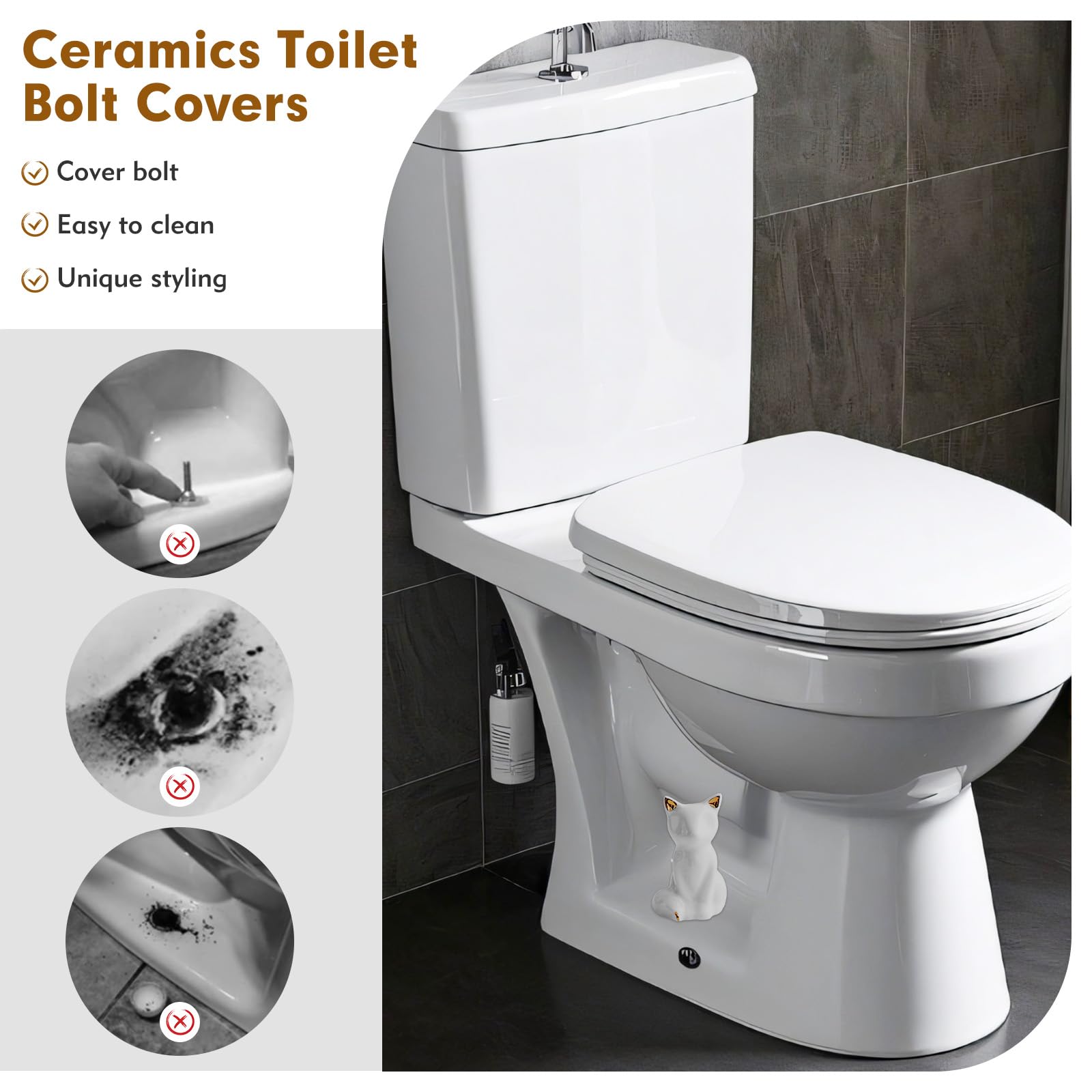 - [Stylish Design]: Our ceramic lovely cat toilet bolt cover is not only a practical bolt cover, but also a beautiful decorative piece. Bring a different visual feeling to the monotonous toilet, make your bathroom unique