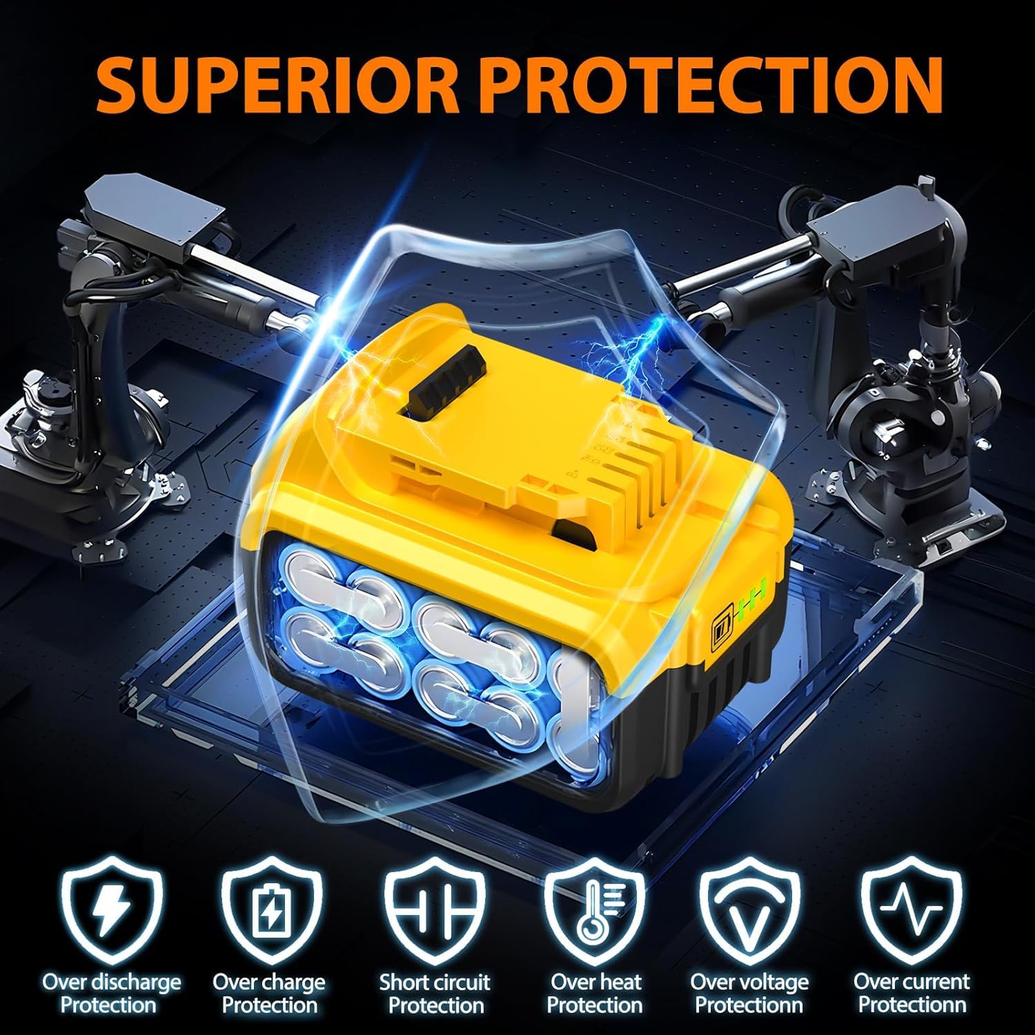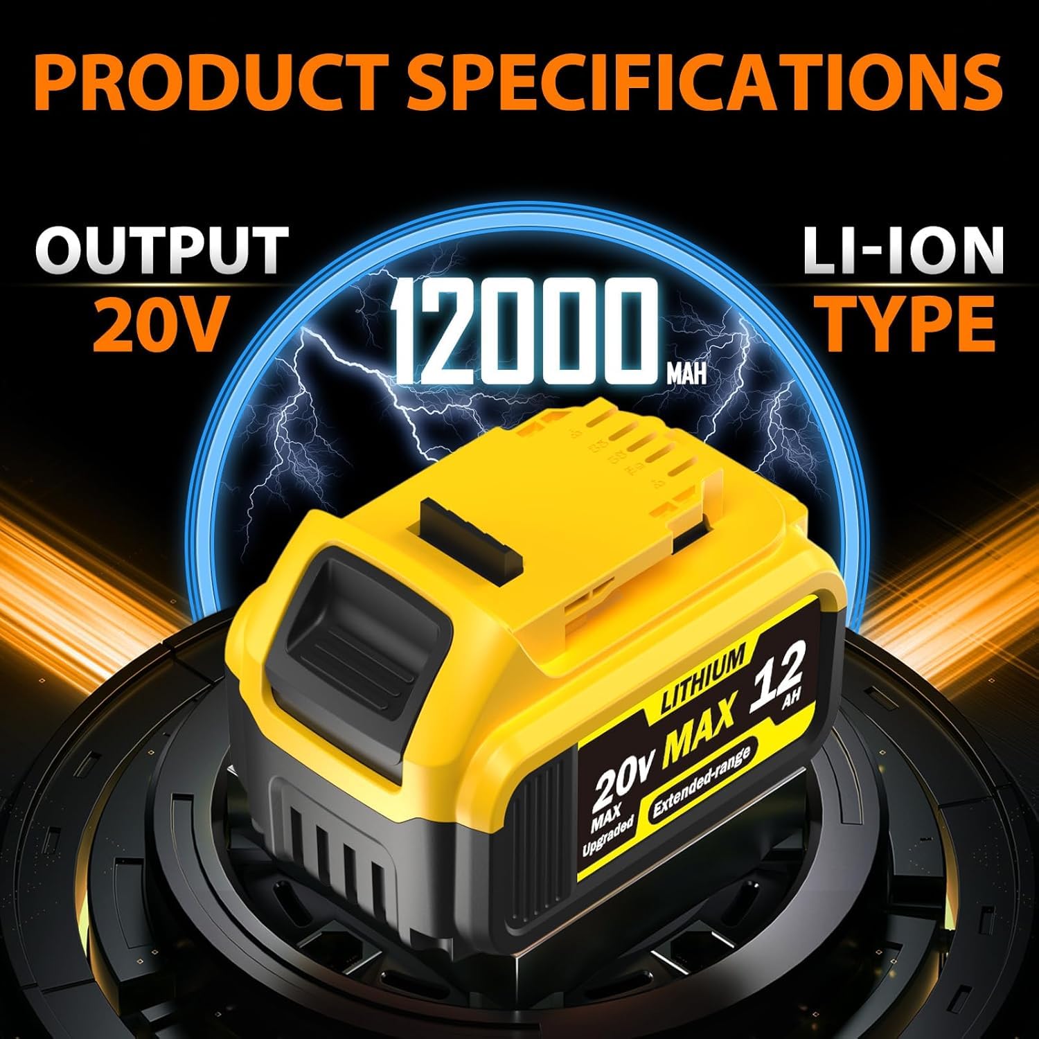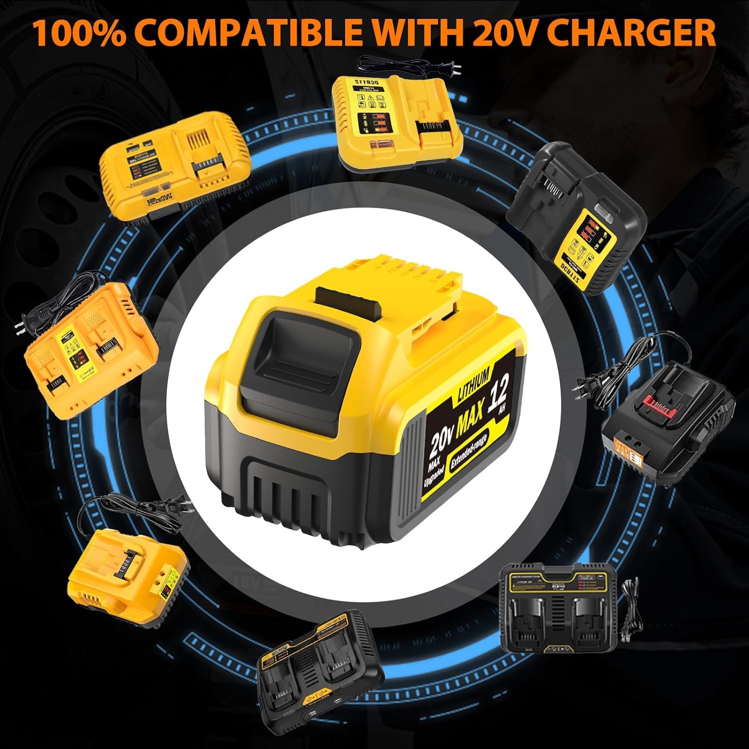 - Higher Capacity, Stronger Performance:Featuring advanced high-density lithium technology, our 20V 12.0Ah battery delivers 50% more capacity than standard 12.0Ah replacements. Engineered for heavy-duty tasks, it ensures longer runtime and consistent power output, keeping your DeWalt 20V tools running at peak performance.
