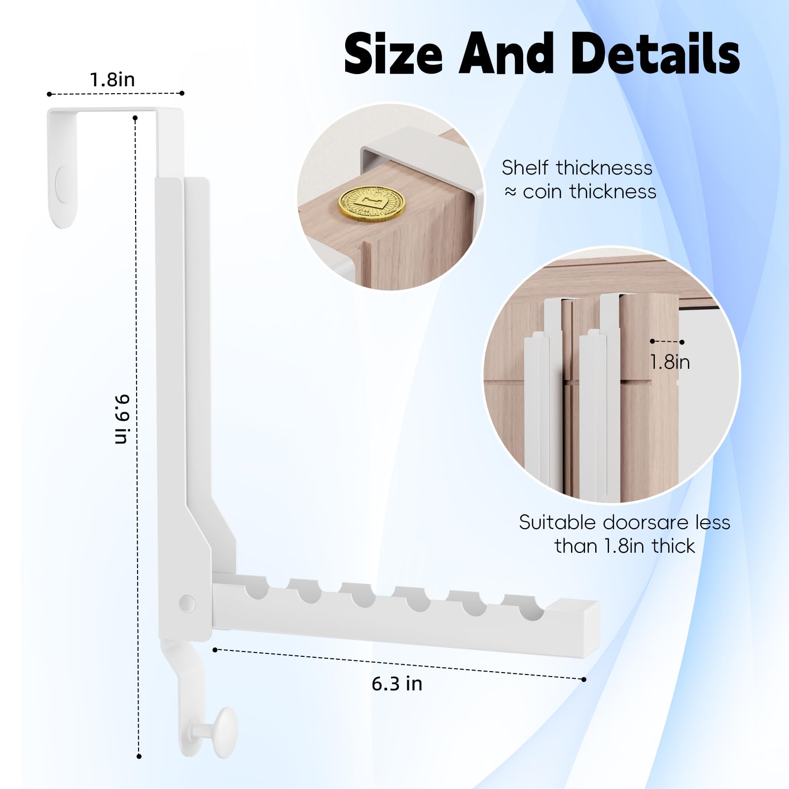 - 【Important Sizing Details】 Please measure the thickness of the door before purchasing, use the door thickness ≤ 1.8 inches(1 3/4"). Also, ensure your door closes with at least a 0.07 inch gap (about the thickness of a coin) at the top so that the door still closes properly when the door hooks are installed