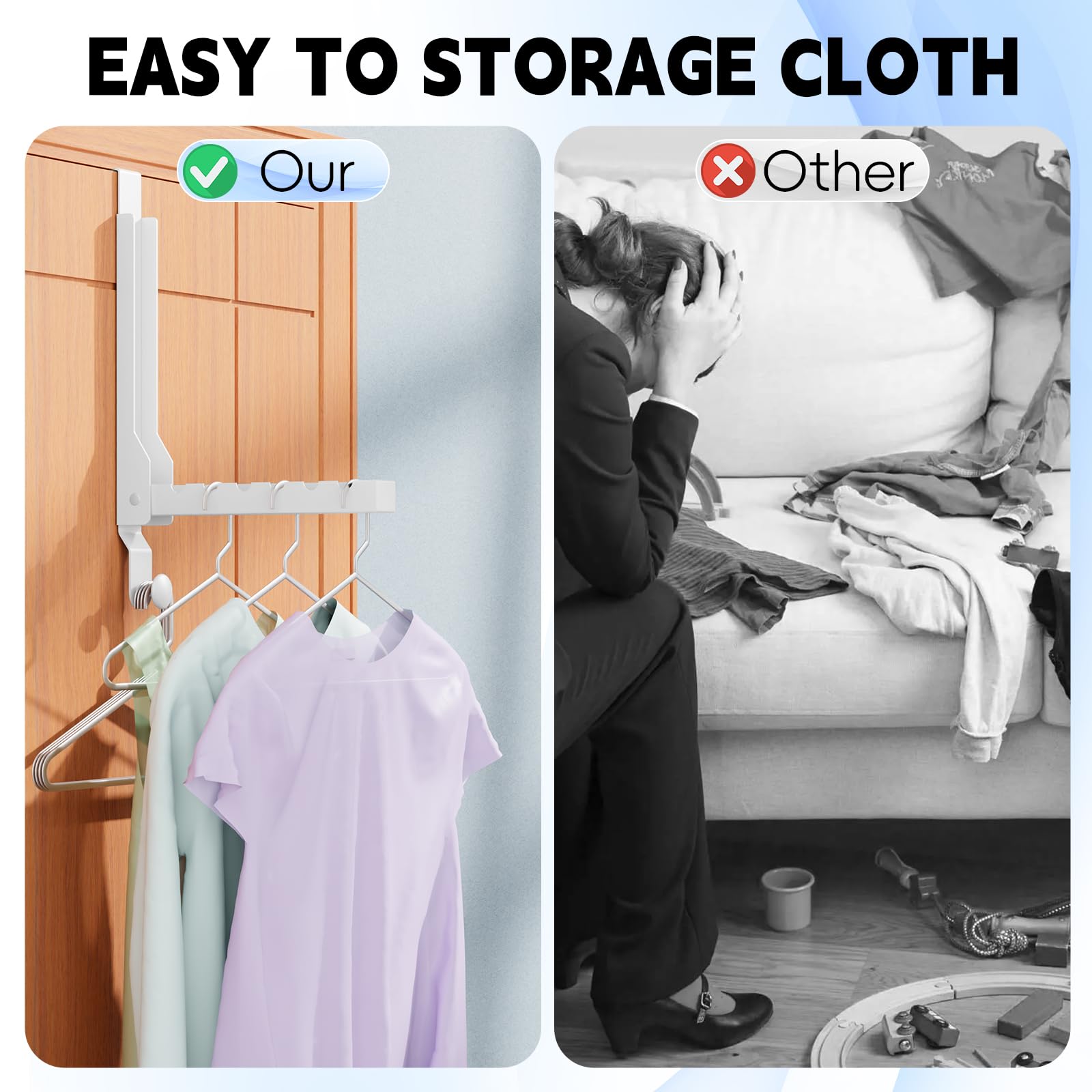 - 【Foldable & Portable Design】This versatile door hanger hook features a hidden folding design, allowing it to be easily folded and removed when not in use. These compact over the door hangers provide ample space for air-drying clothes or simply hanging garments in small apartments, laundry rooms, or dorm rooms.