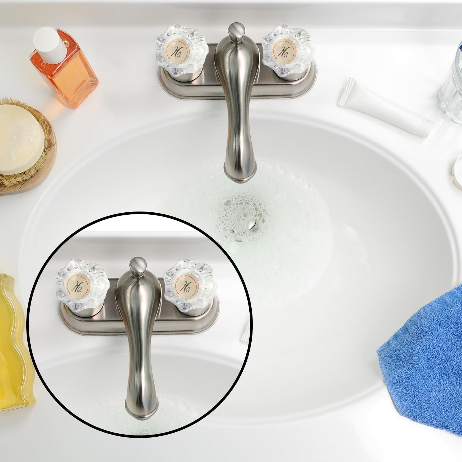 - Clear Acrylic Construction: Constructed with thick acrylic material, these replacement handles feature a charming and classic crystal exterior, adding a touch of elegance to your faucet