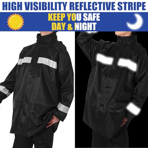 2 Pcs Reflective Rain Jacket for Men Waterproof High Visibility Rain Coat Black Safety Jacket with Reflective Strip
