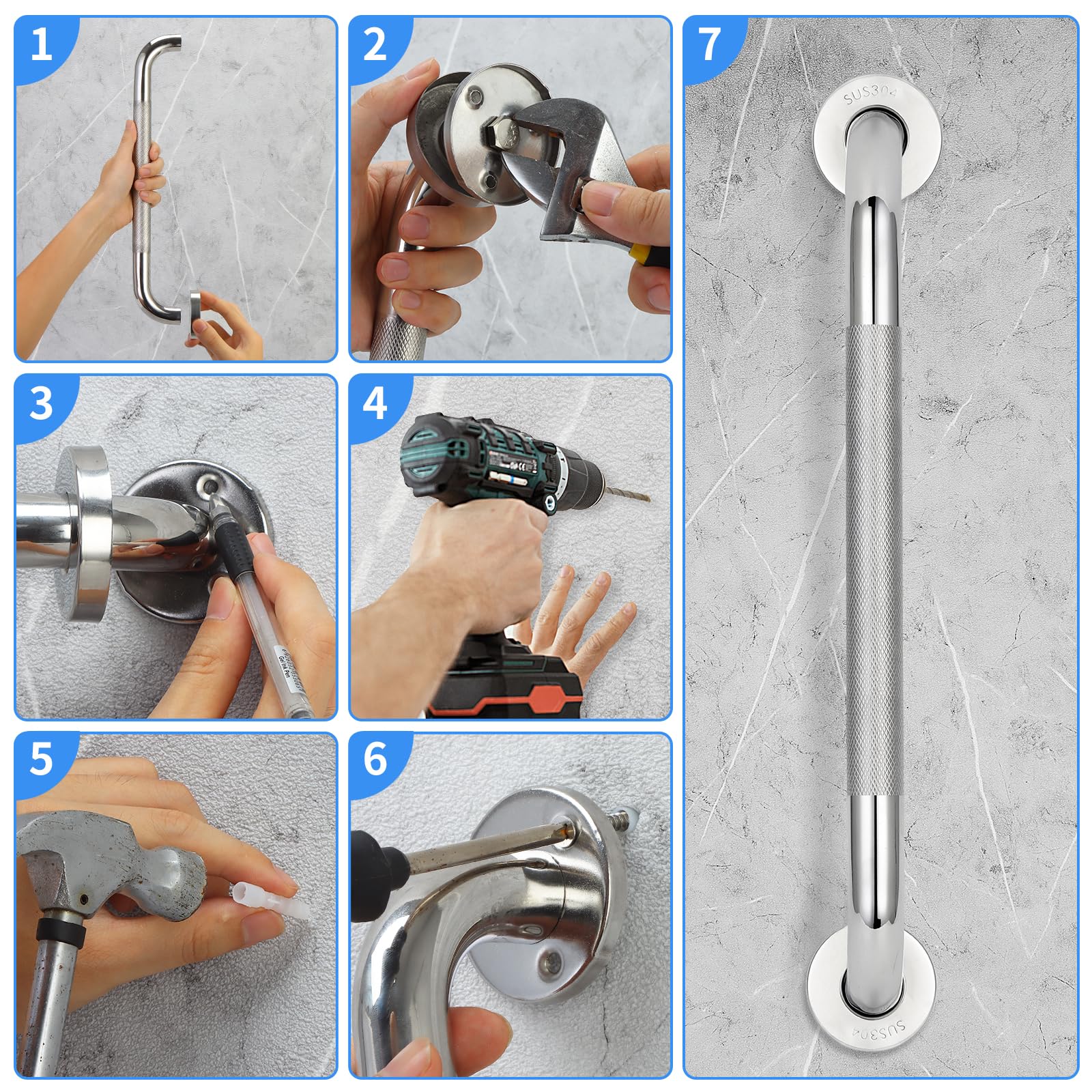 - 【Stainless Steel Material】The shower grab bars are made of SUS 304 stainless steel which is waterproof, rustproof, sturdy and stable. Grab bars for bathtubs and showers can support up to 500lbs, creating a safety bathroom and staircase experience for your family.