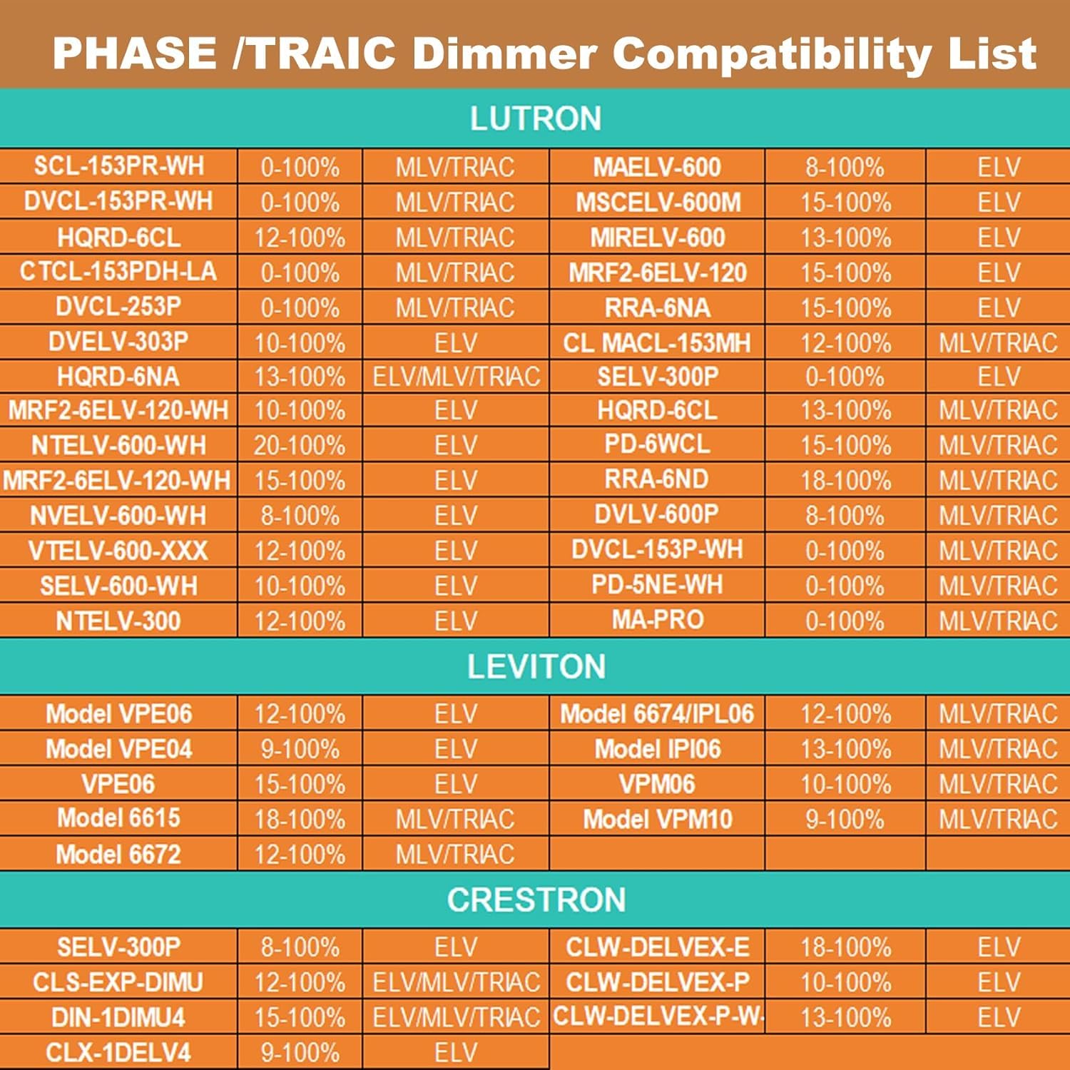 - Strong compatibility & Widely Use:Our Triac ELV/MLV dimmable LED driver 96W 24V is compatible with Lutron &Leviton Switches, it can be used for a variety of applications, including 24V LED Strip Lights, 24V Power Supply, LED modules, LED bulbs, and more. With this 24v transformer, you can enjoy beautiful dimming experience!