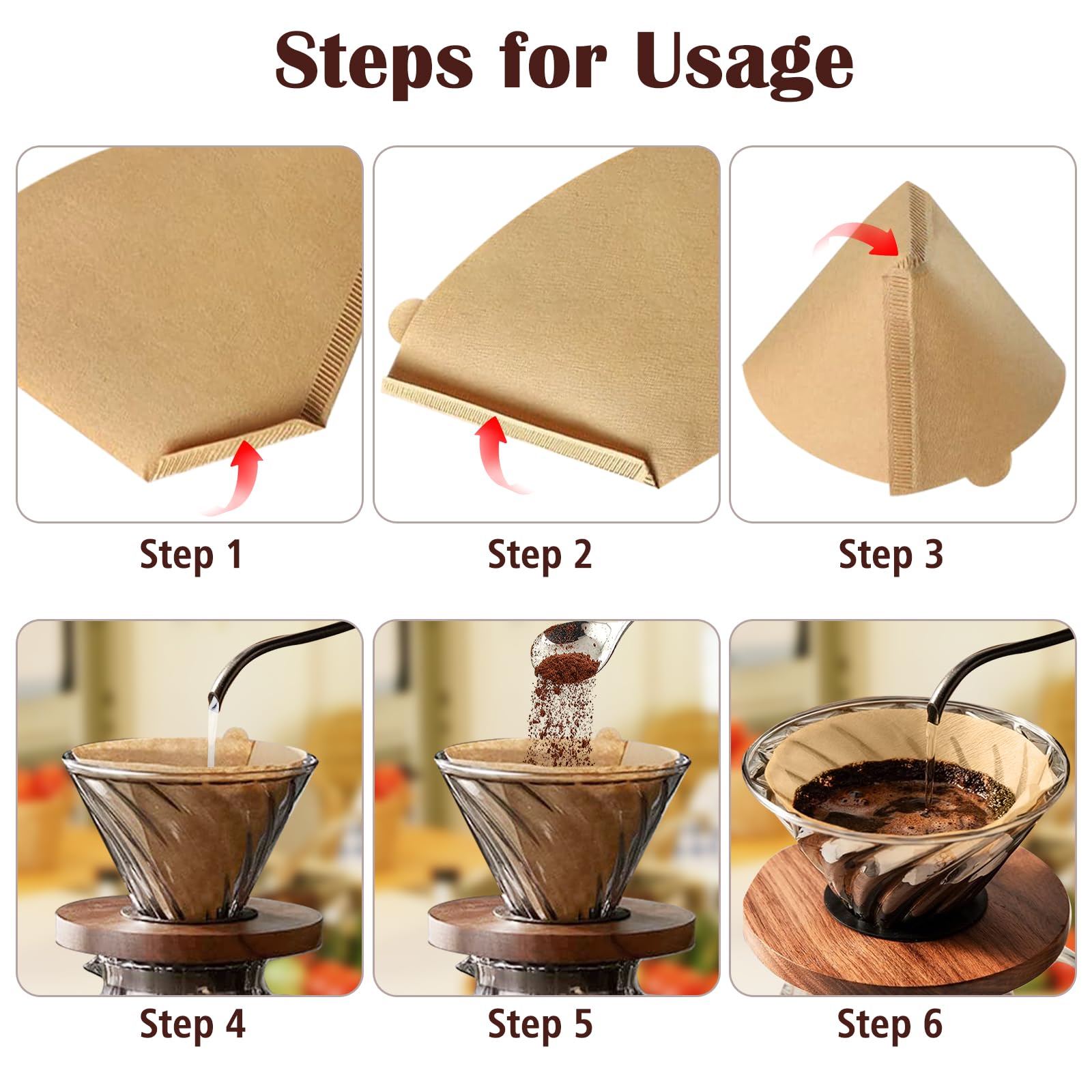 - Natural & Unblanched: These coffee filters are made from pure natural log pulp without the use of harmful chemicals or adhesives, unbleached to maintain their natural color and no irritating odors for a healthy coffee experience.